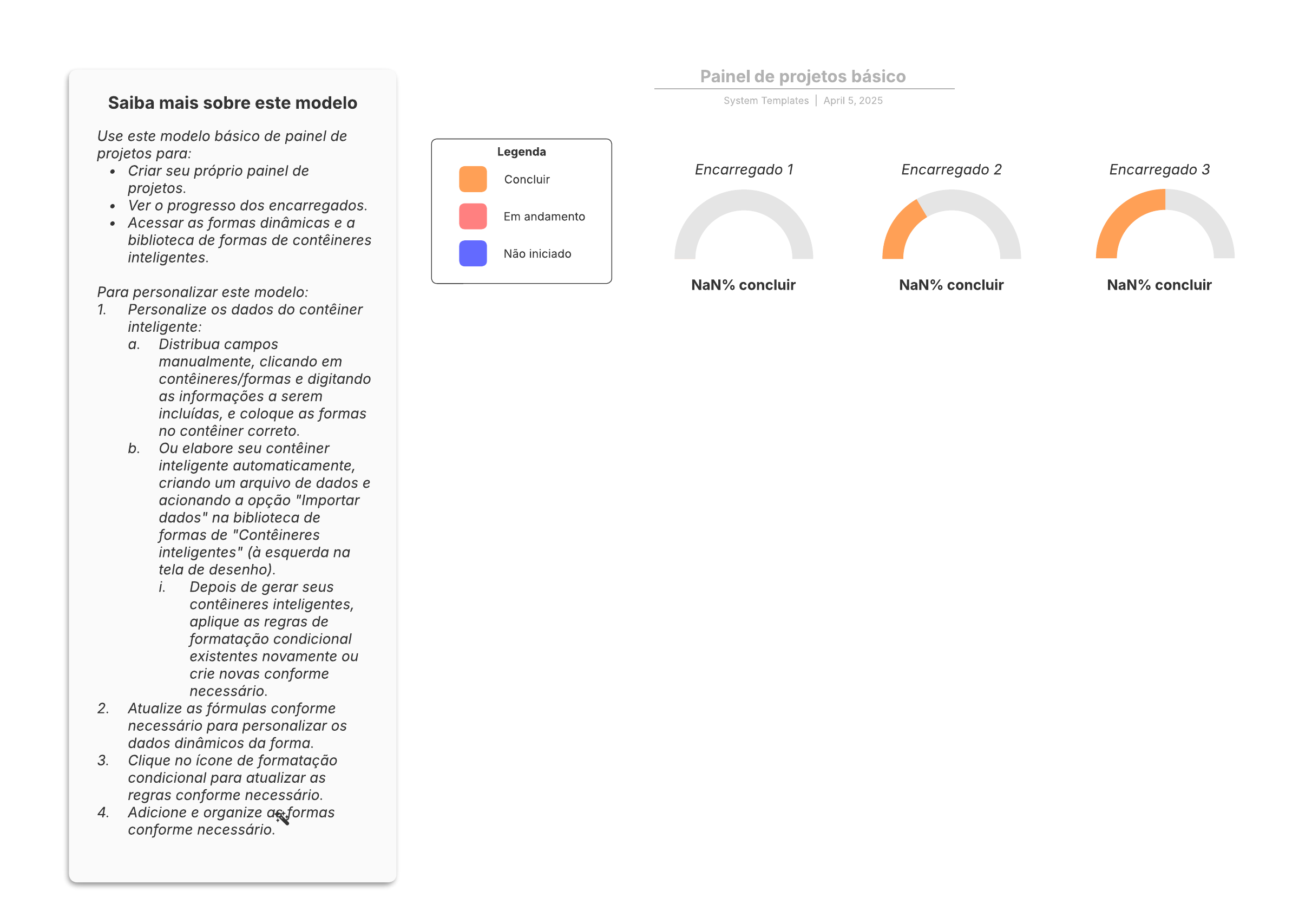 Abra este modelo e adicione conteúdo para personalizar o painel básico de projetos de acordo com seu caso de uso.