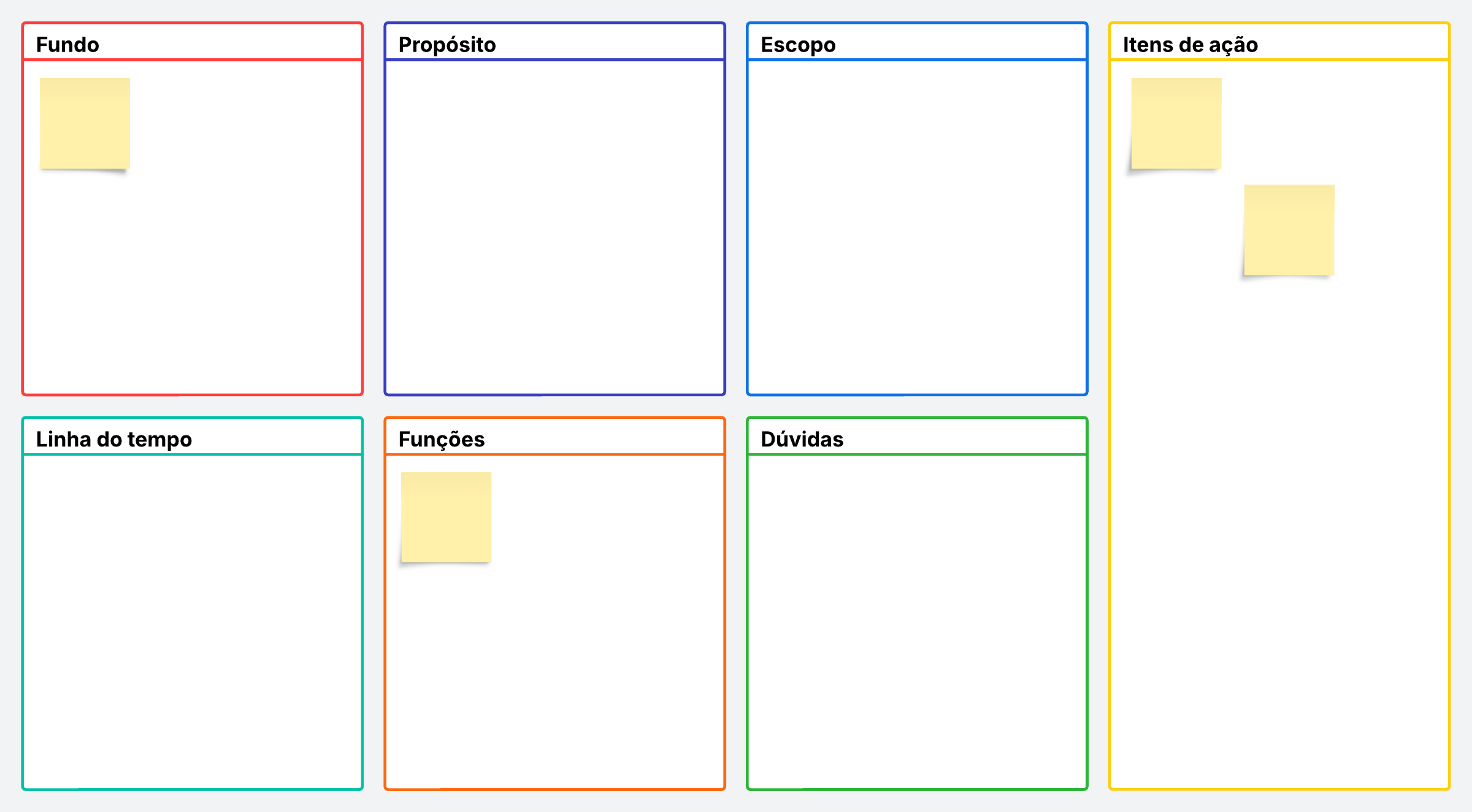 Use este mural de pontapé de projetos para iniciar seu próximo projeto da melhor forma possível. Apresente os detalhes do projeto e mantenha sua equipe alinhada aos cronogramas e métricas de sucesso.