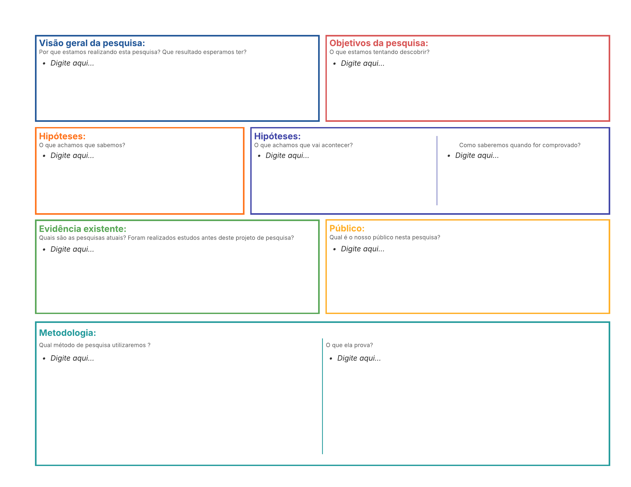 Abra este modelo e adicione conteúdo para personalizar o diagrama de cartão de pesquisa de UX de acordo com seu caso de uso.