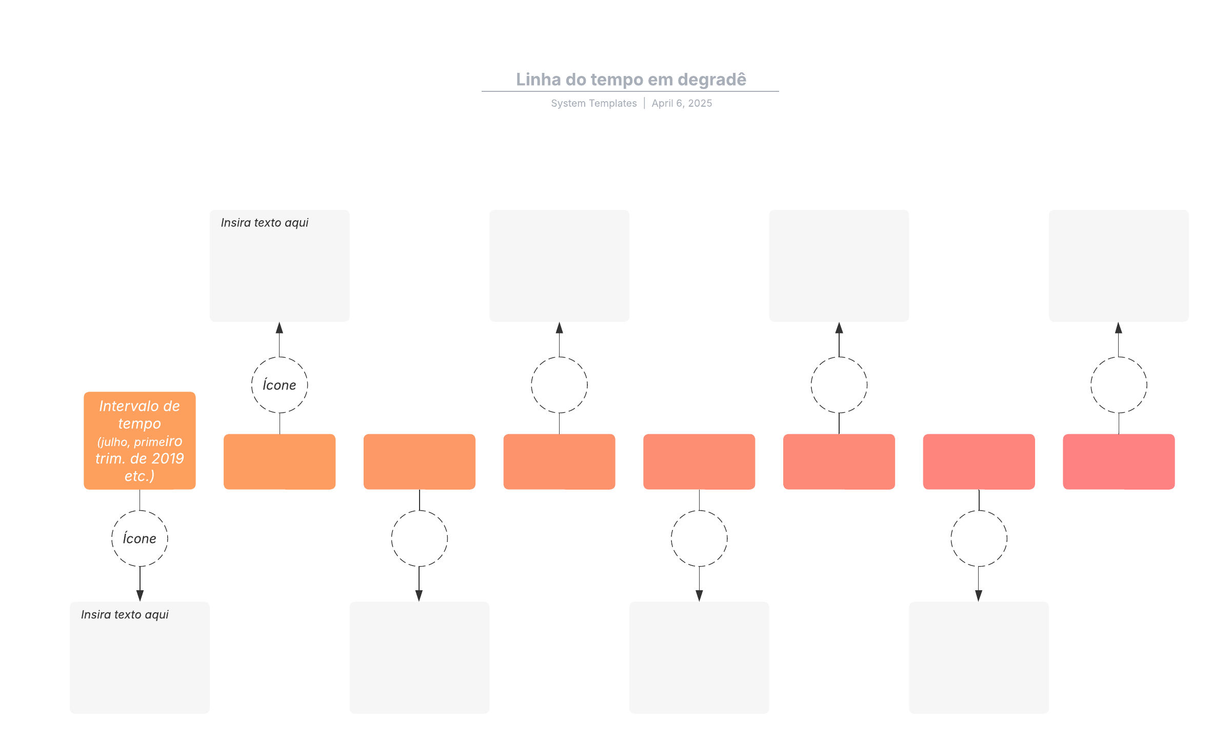 Abra este template e adicione conteúdo para personalizar a linha do tempo horizontal de acordo com seu caso de uso.