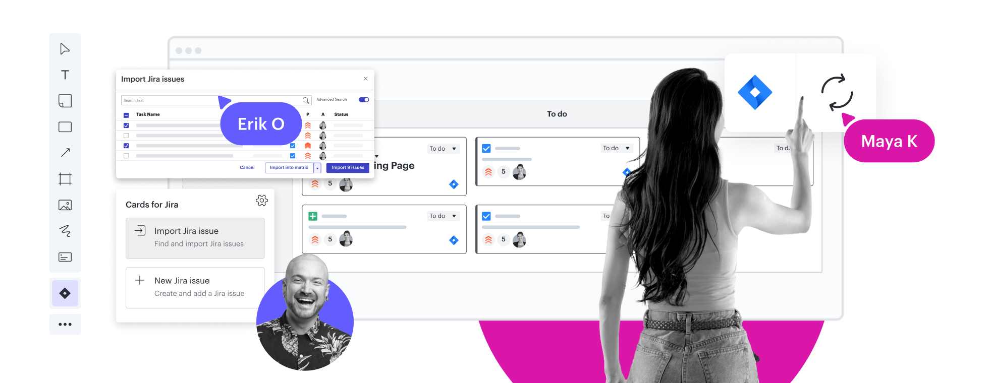 Crie cada aspecto do seu sprint visual — desde a priorização de tarefas até a criação de cronogramas. Simplifique tarefas com as integrações do Jira e Azure DevOps.