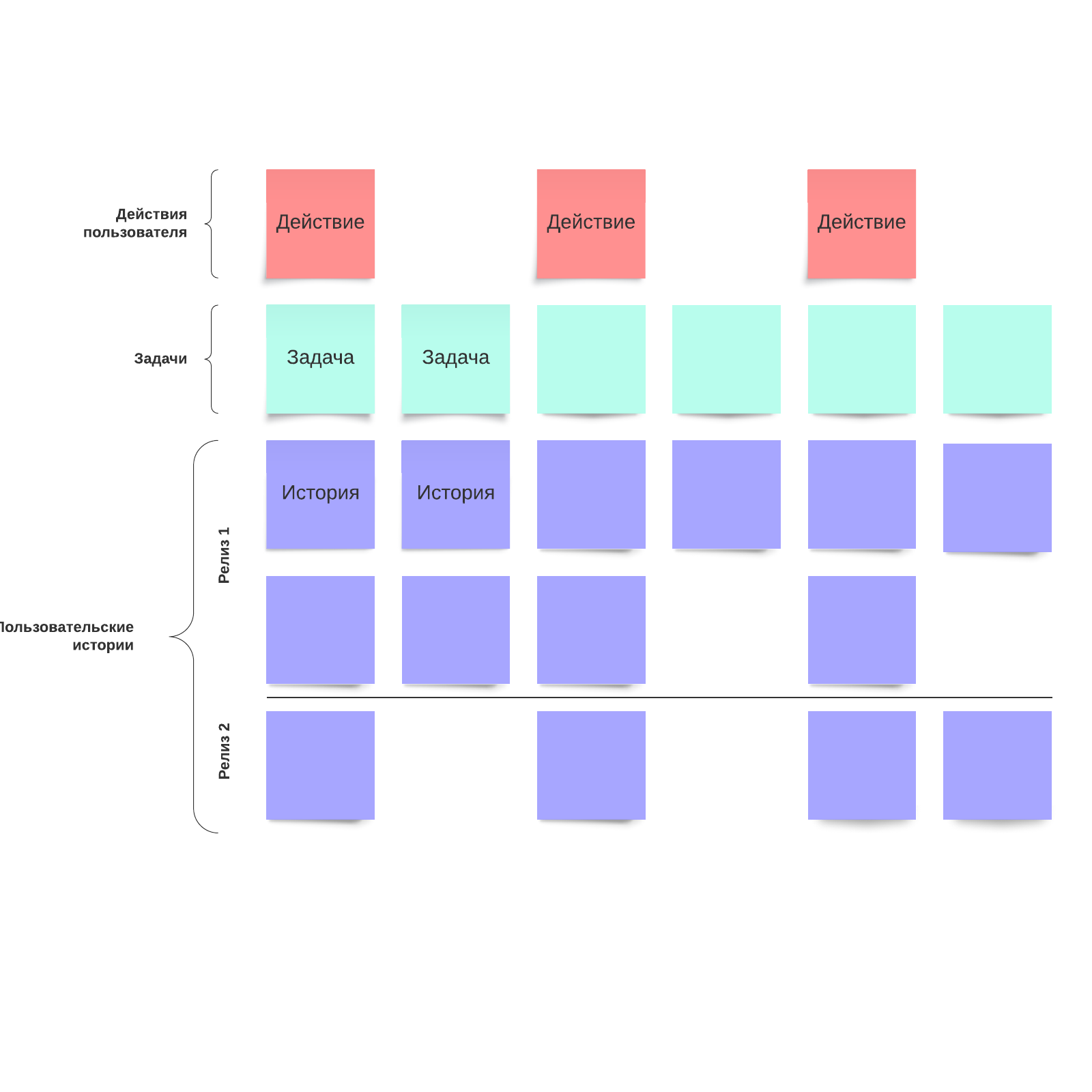 Карты пользовательских историй, созданные на нашей бесплатной платформе, помогут вам собрать ценные наблюдения. Выделить основные темы по итогам мозгового штурма, наглядно и понятно представить сложную информацию и привести всю команду к общему знаменателю — всё это можно сделать в офисе, на удаленке или в гибридном режиме.