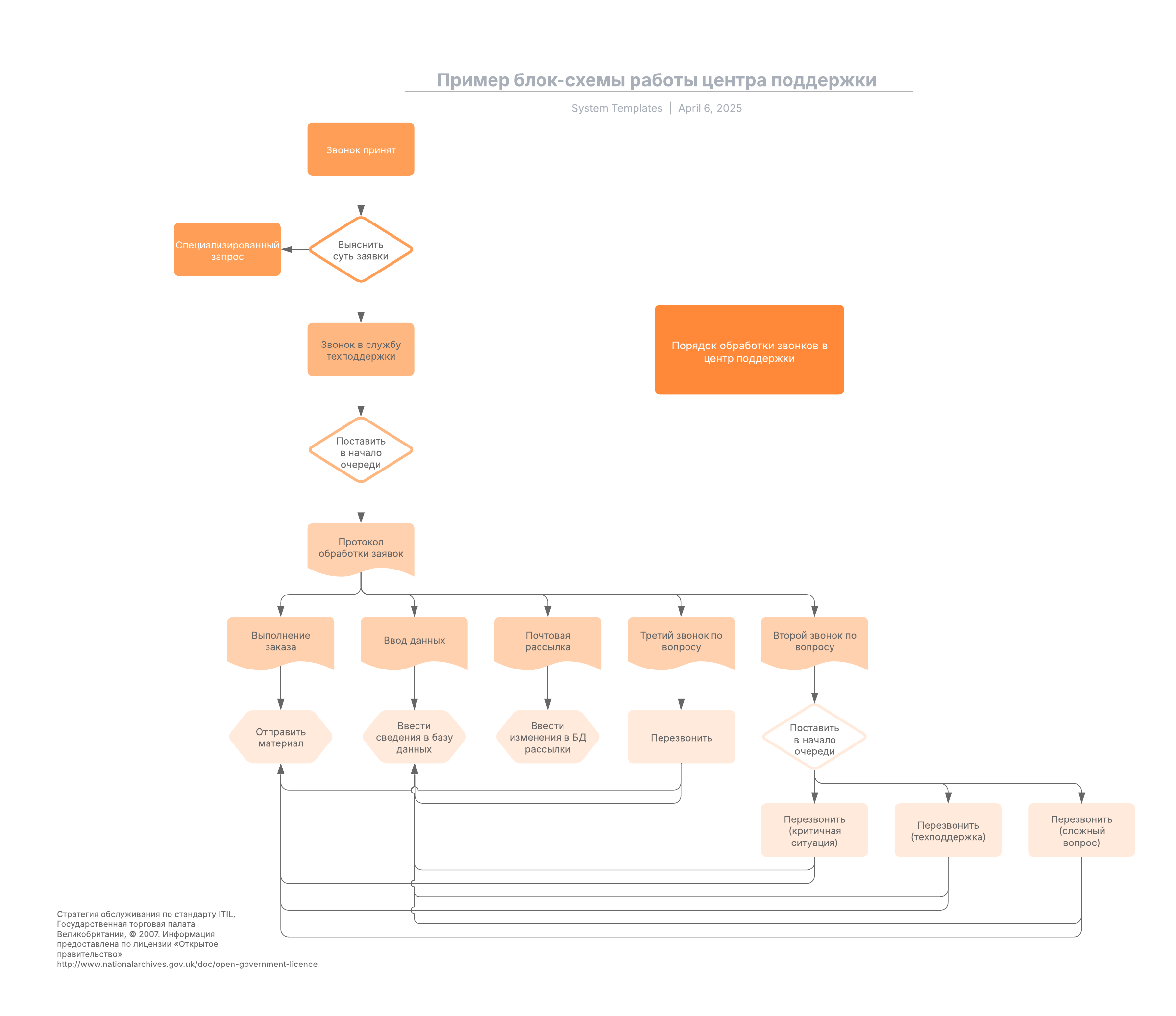Этот шаблон блок-схемы работы центра поддержки поможет вам: