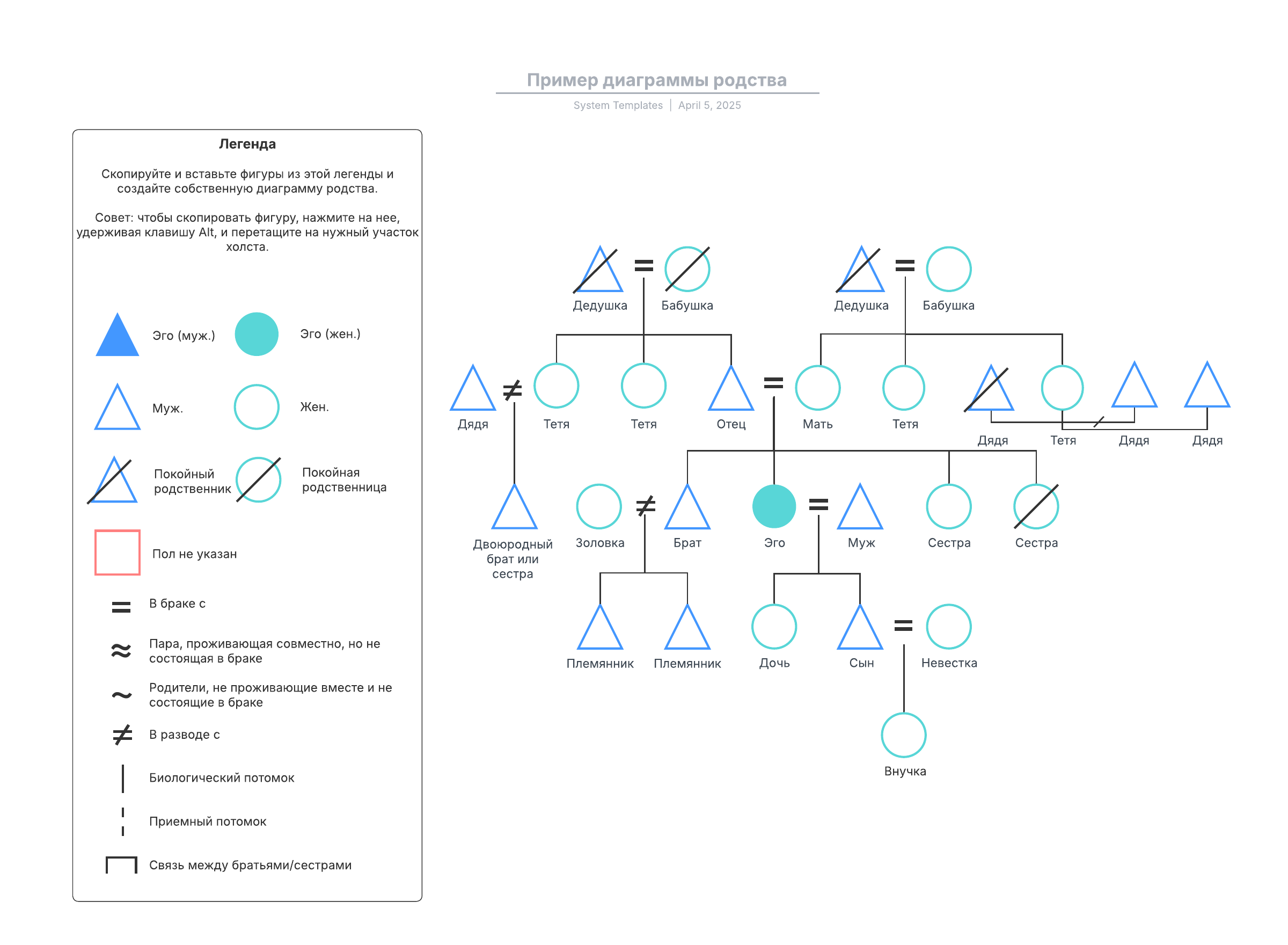 Откройте шаблон, чтобы подробнее рассмотреть наш пример и начать свой проект родословной.