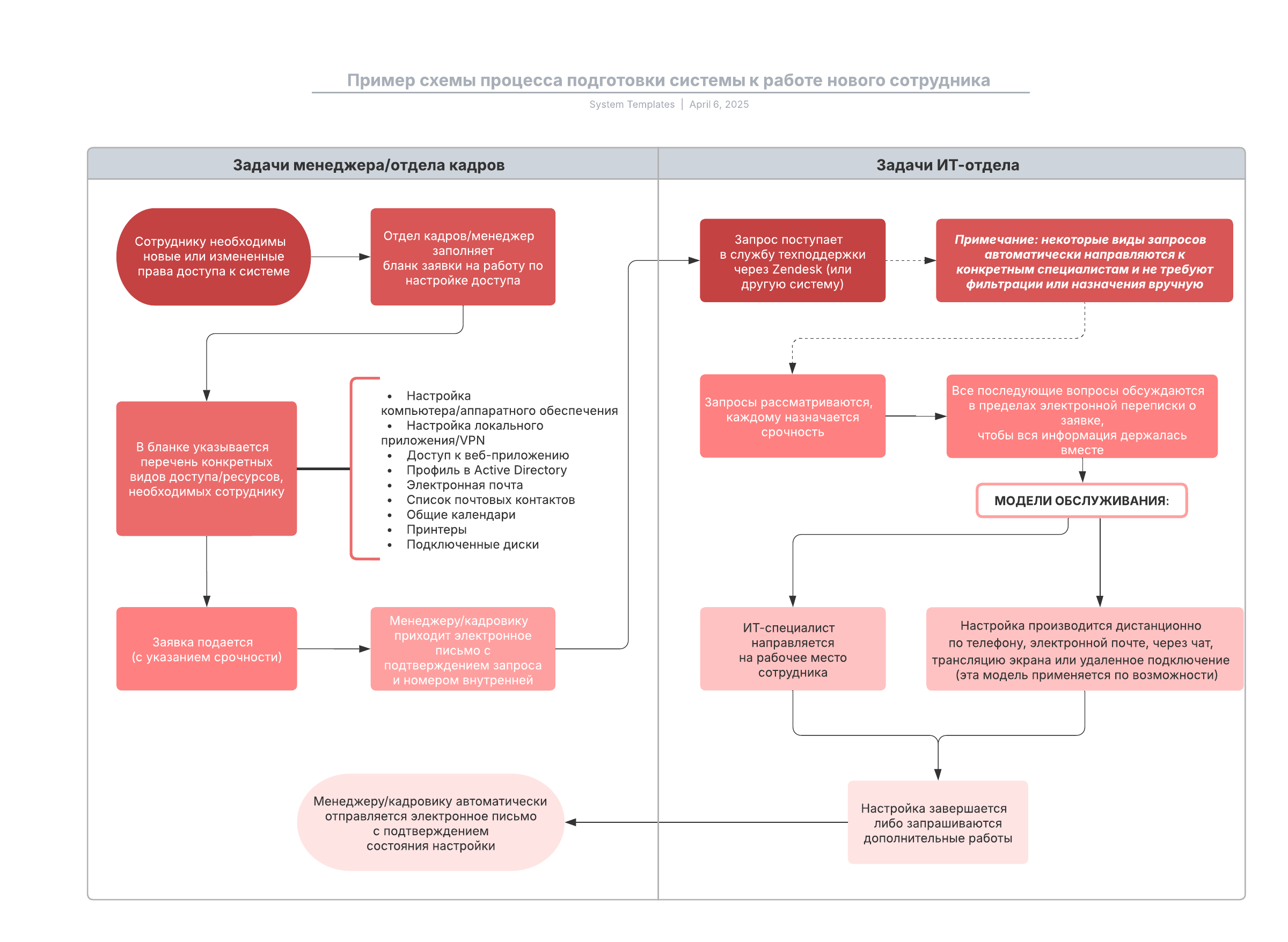 Пример схемы процесса подготовки системы к работе нового сотрудника