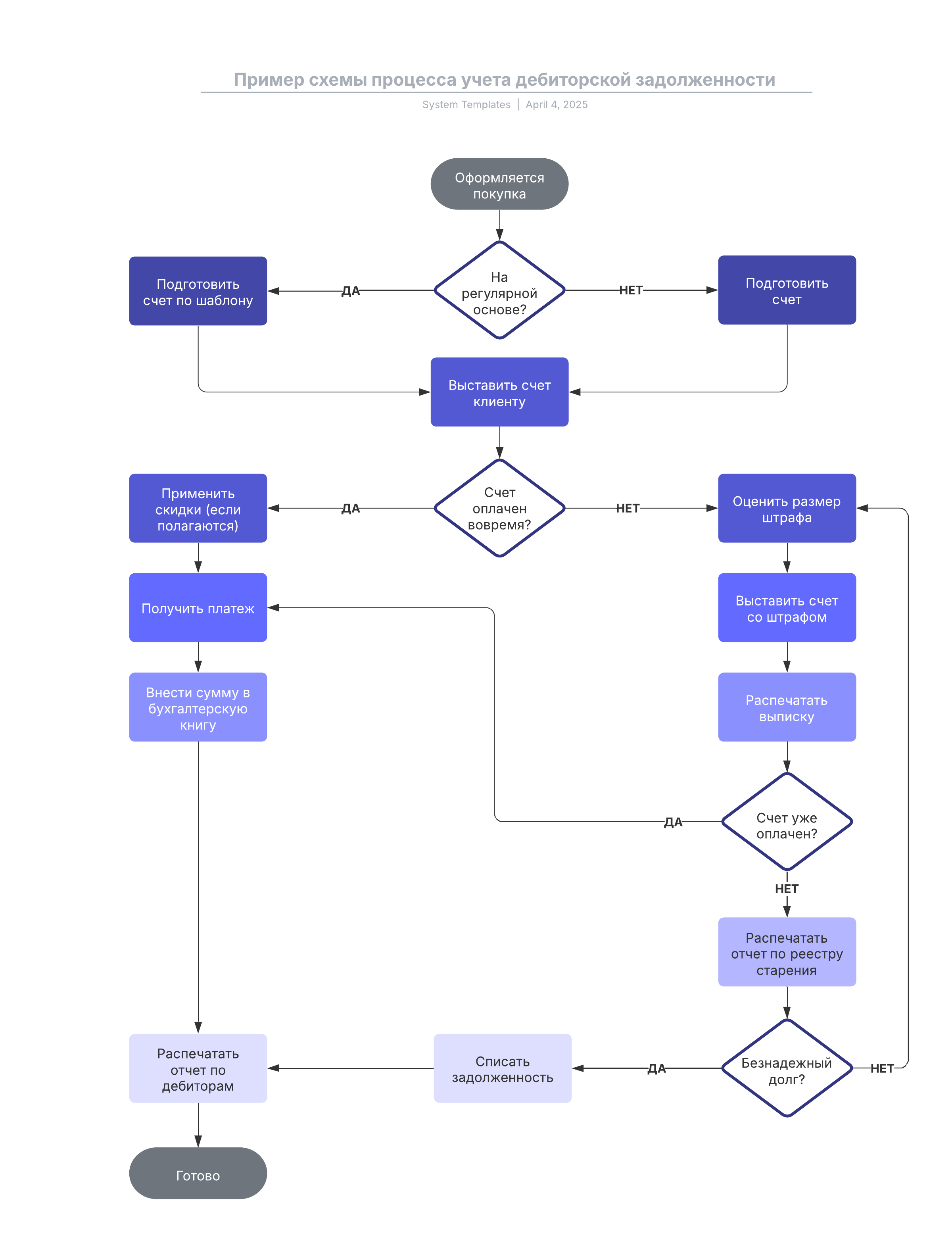 Пример схемы процесса учета дебиторской задолженности