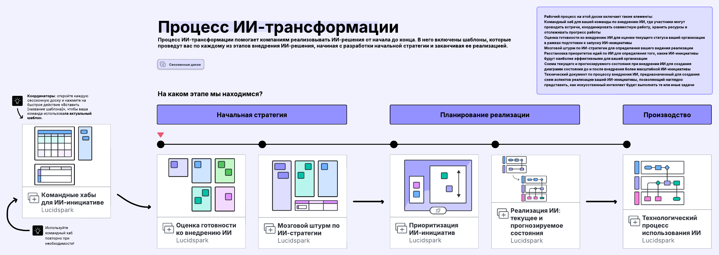 Реализуйте ИИ-инициативы на всех этапах рабочего процесса, начиная с этапа разработки первичной стратегии и заканчивая этапом реализации.
