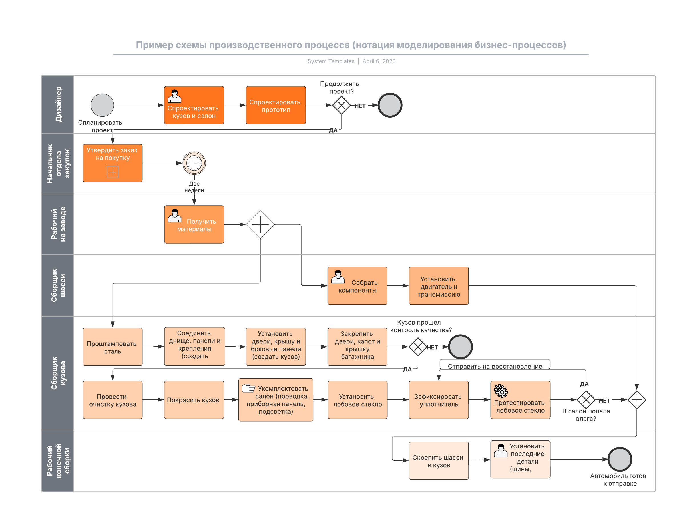 Наш шаблон BPMN-схемы технологического процесса поможет вам: