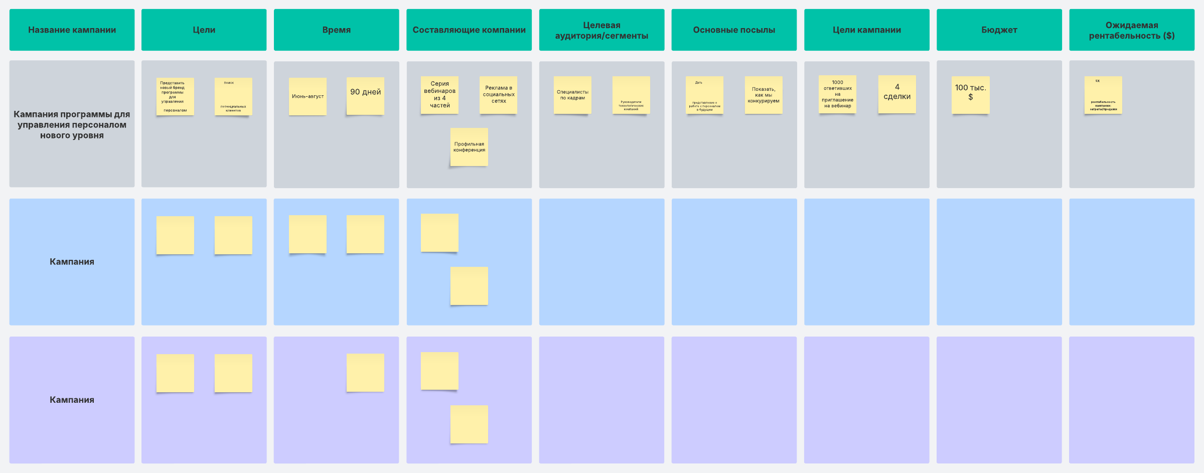 Зафиксируйте основную идею следующей маркетинговой кампании с помощью этого шаблона планирования.