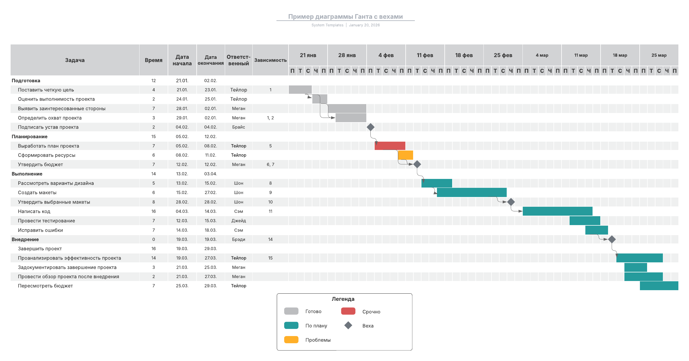Пример диаграммы Ганта с вехами