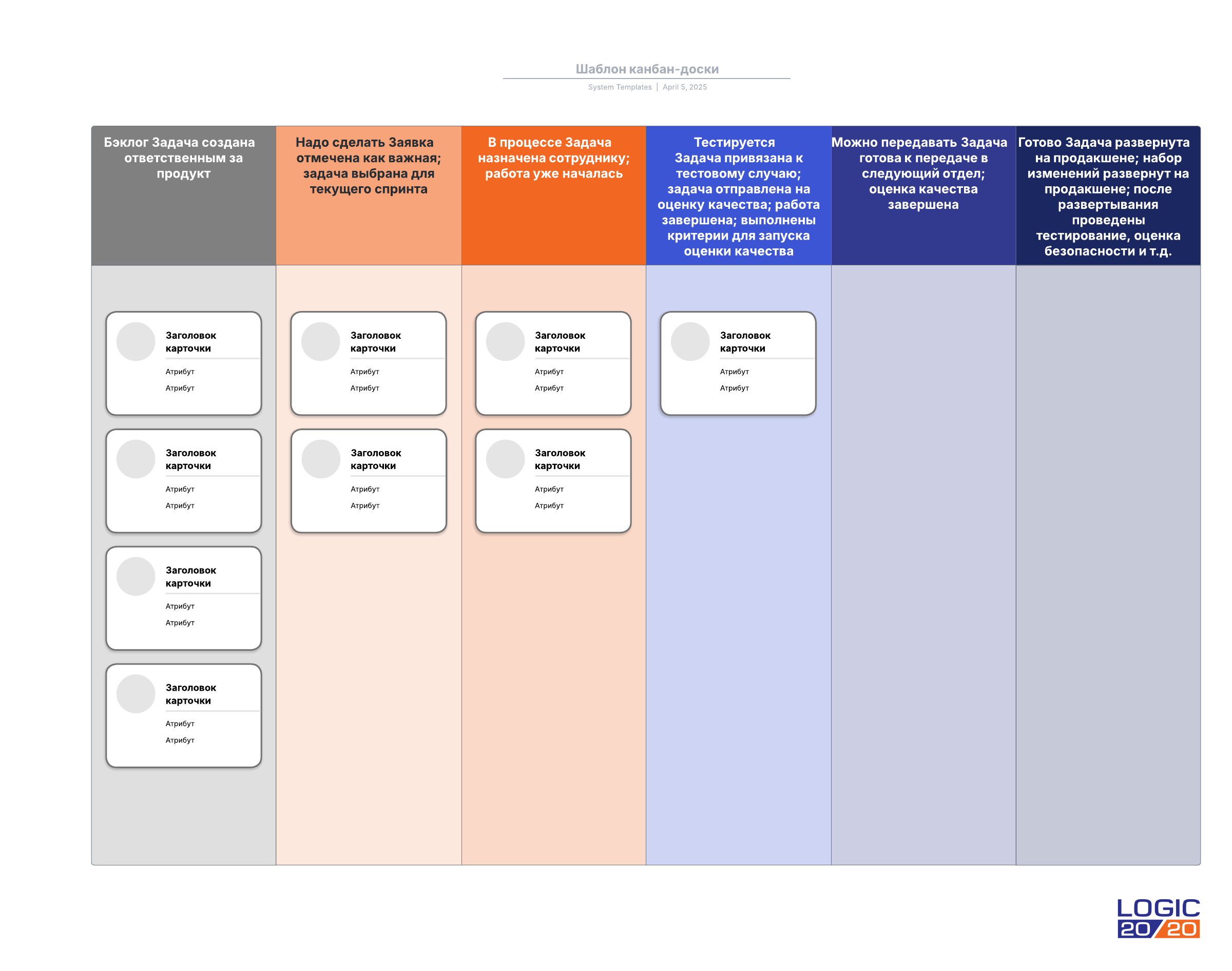 Чтобы превратить этот пустой холст в полноценную канбан-доску, просто откройте шаблон и внесите необходимую информацию.