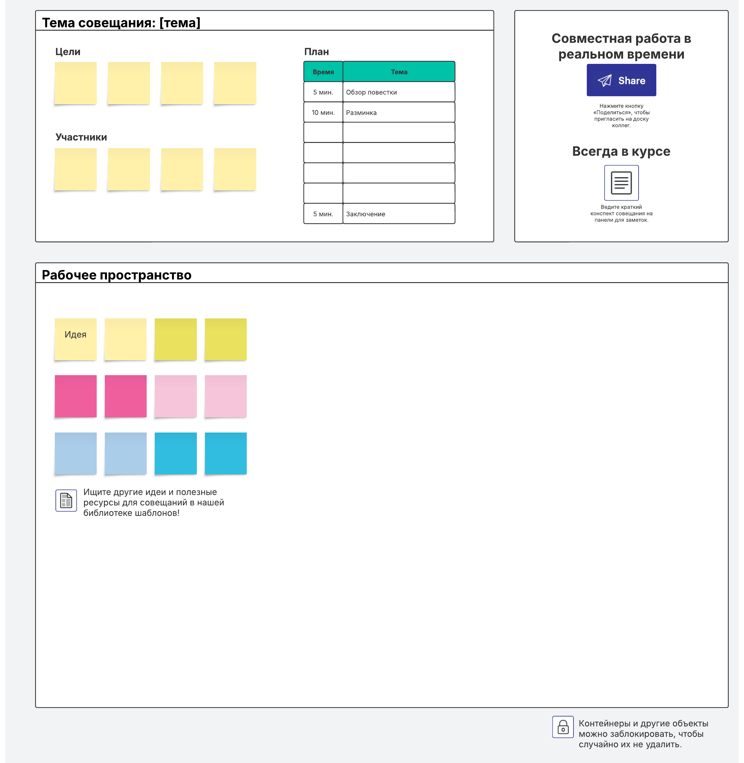 Проведите по-настоящему эффективное совещание! Наш шаблон поможет вам спланировать повестку и подключить к работе всю команду.