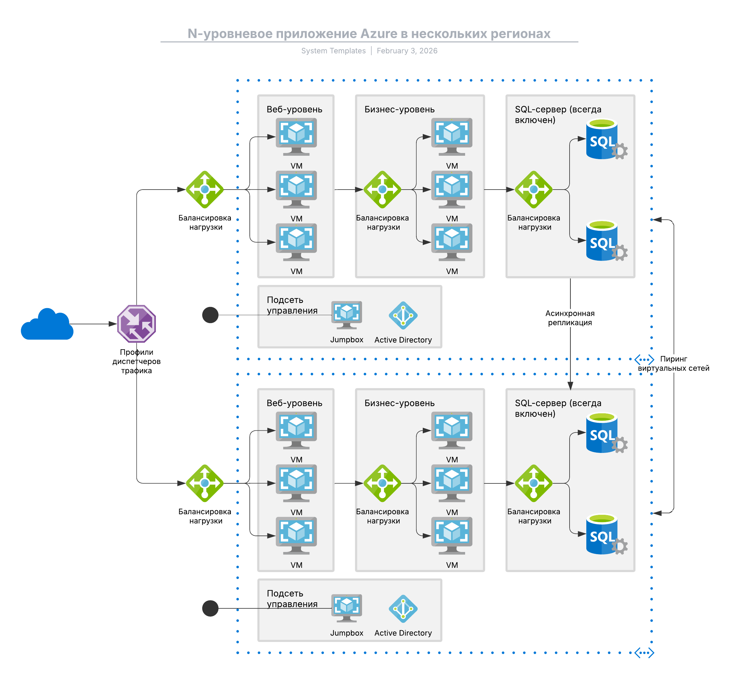 N-уровневое приложение Azure в нескольких регионах