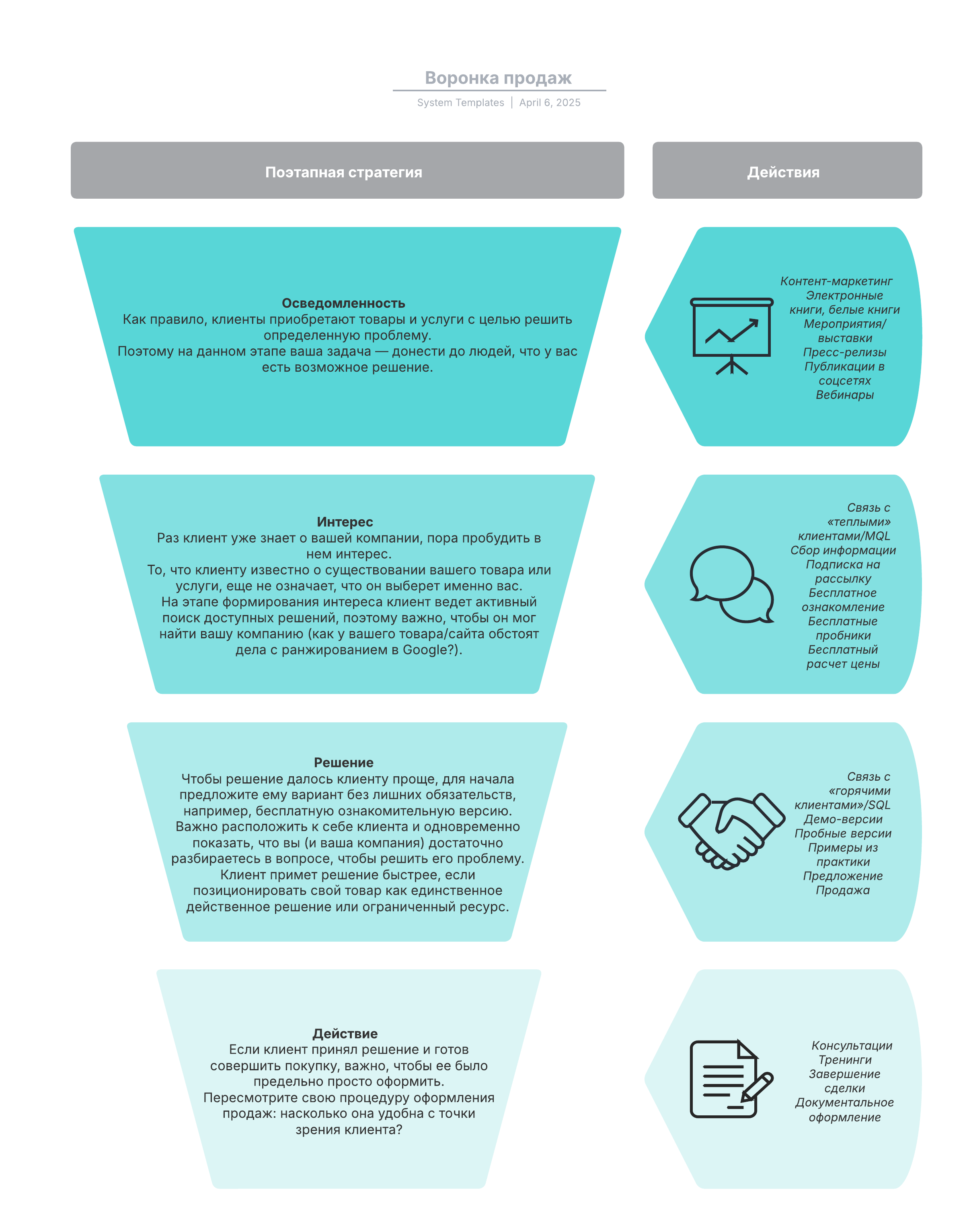 Чтобы выстроить собственную воронку продаж, откройте наш шаблон и внесите недостающую информацию.