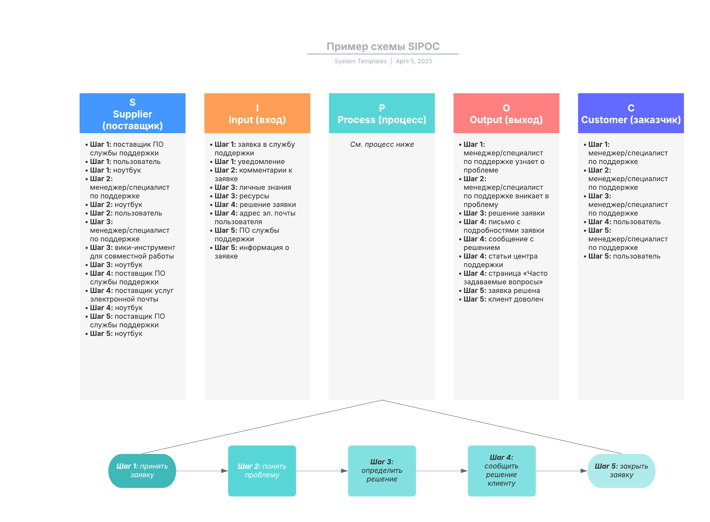Откройте шаблон, чтобы подробнее рассмотреть наш пример и настроить его под свой проект по методу SIPOC.
