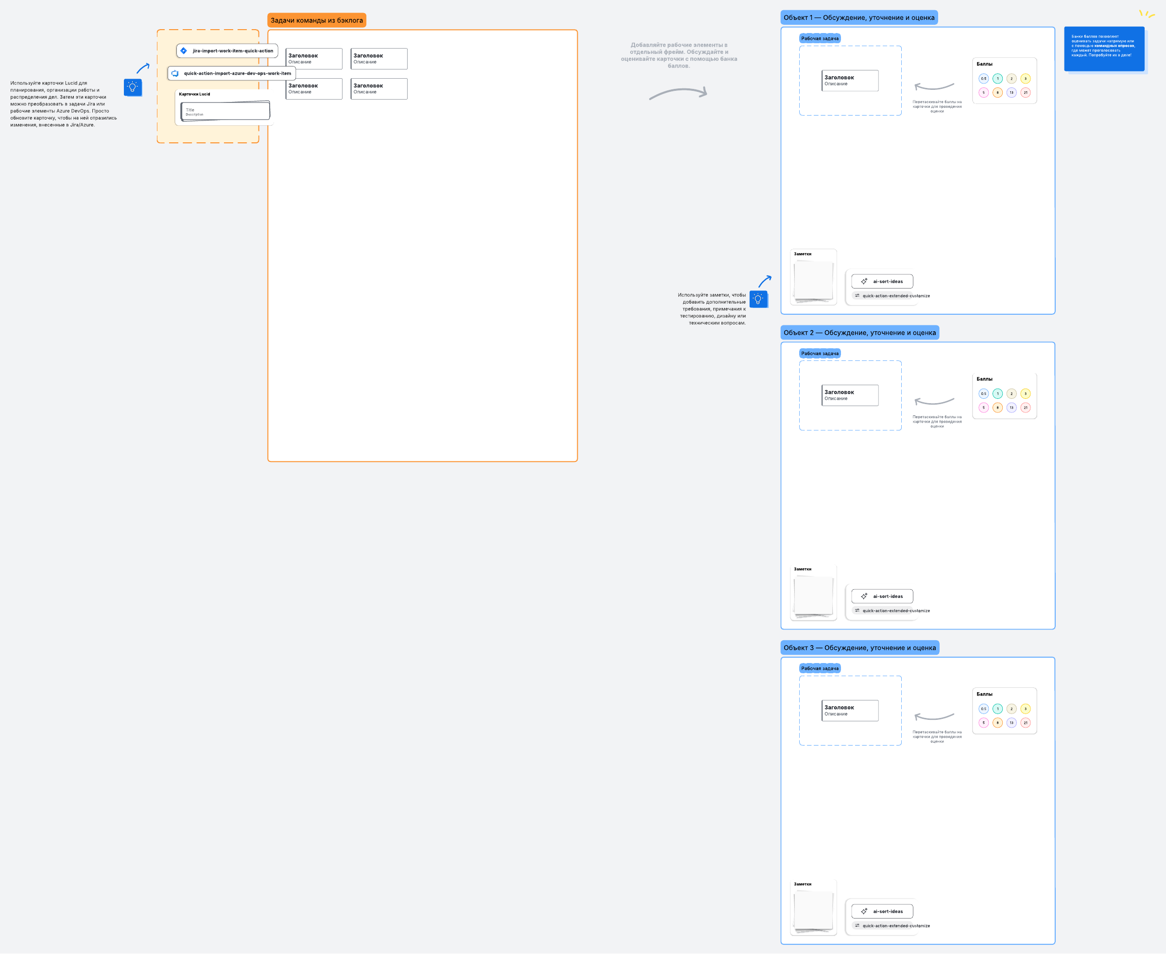 Оценка спринта — это время, когда команды оценивают объем или сложность набора задач. В этом шаблоне используется общая для многих agile-команд последовательность Фибоначчи с целью оценки задач в рамках процесса Scrum.