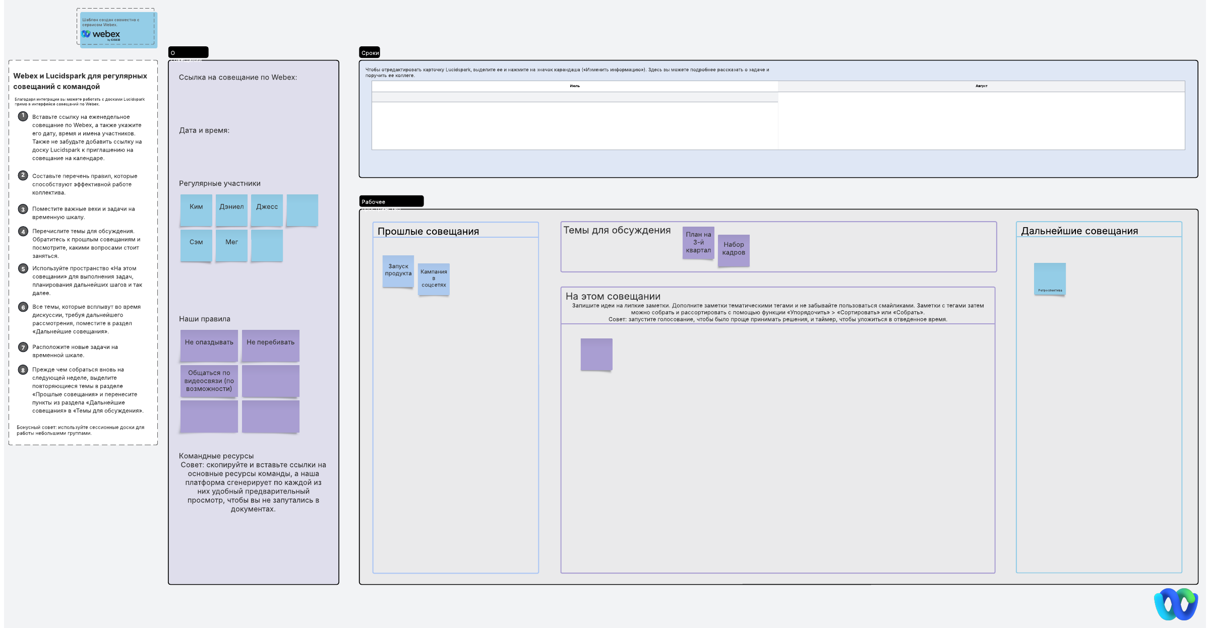 Проводите регулярные совещания с командой с помощью интеграции Lucidspark для Webex.