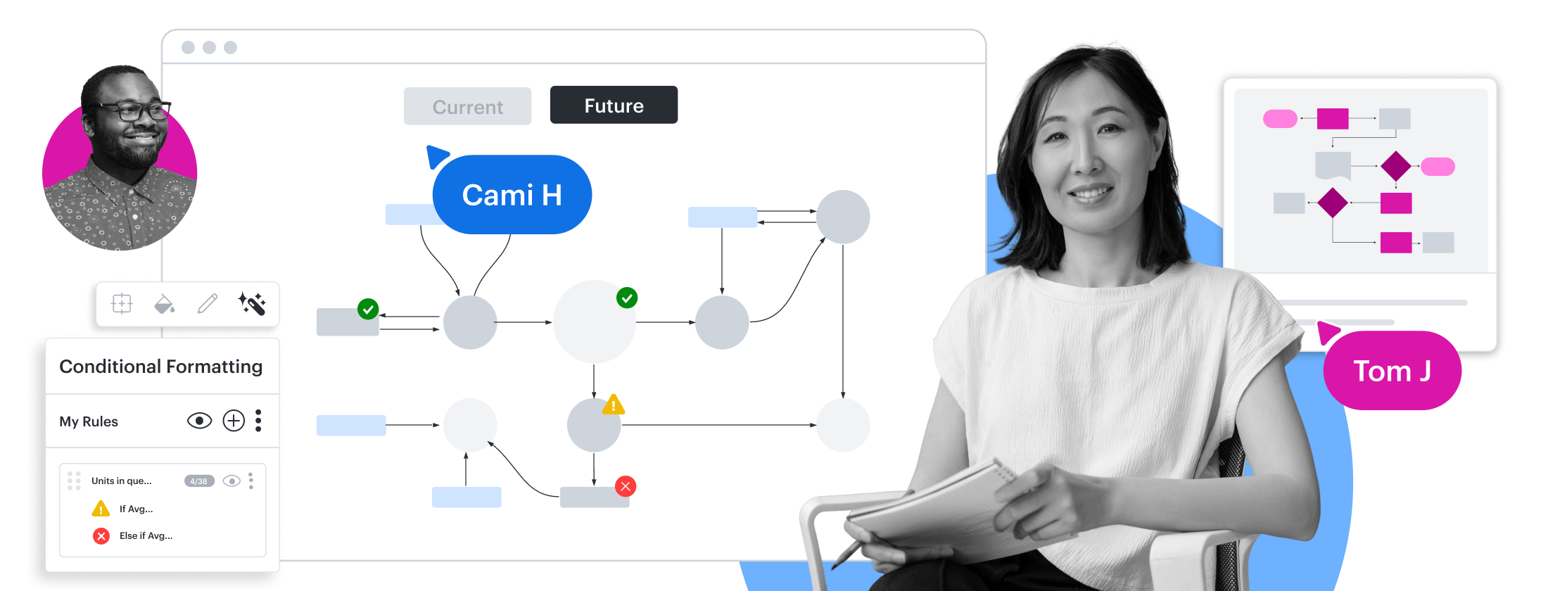 Work side by side with customers to ensure mutual success. Create and share onboarding and engagement plans in the Lucid Visual Collaboration Suite.