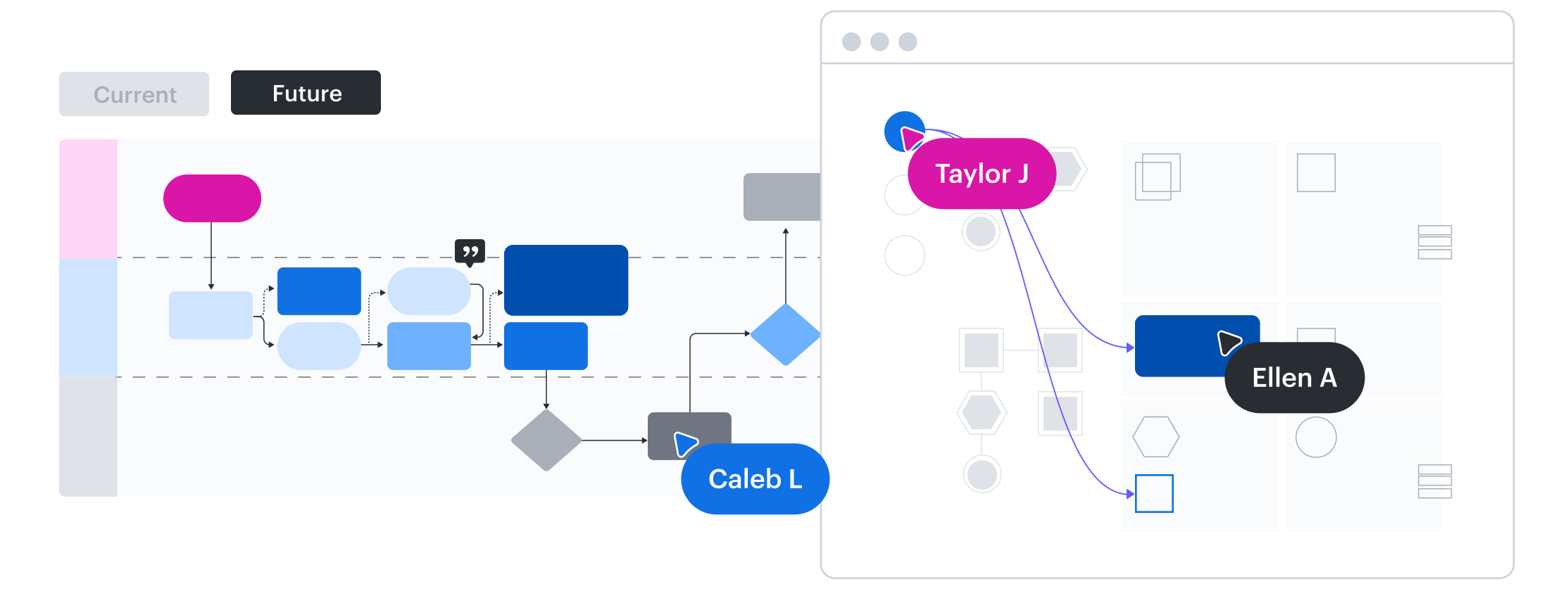 Evaluate internal processes, then share insights with clients and advisors. Make sure new systems and workflows are secure and clear. Plus, you can integrate your diagrams with Confluence.