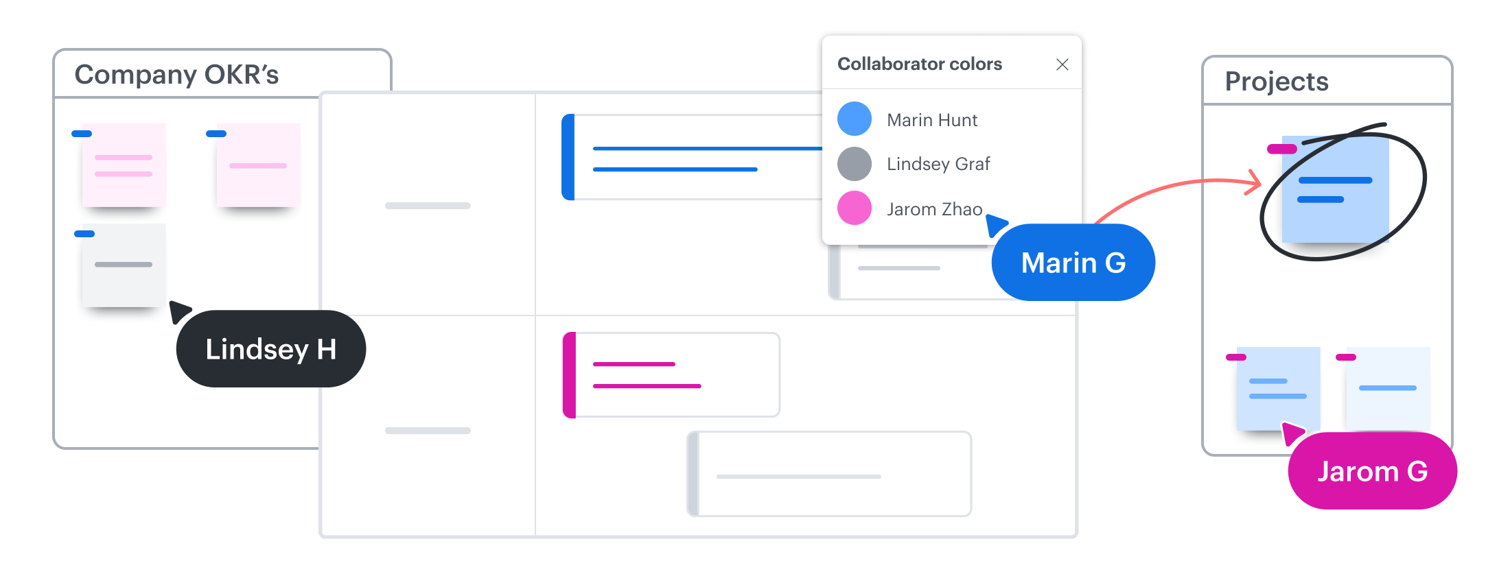 Virtual whiteboards with voting, reactions, Facilitator Tools, and more empower your whole team to actively participate in structured problem-solving.