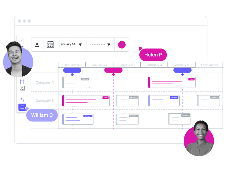 Create a single source of truth for legal research and documents. Build timelines, flowcharts, and other demonstrative exhibits.