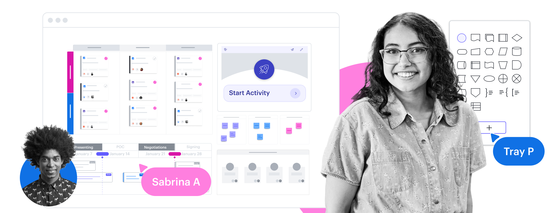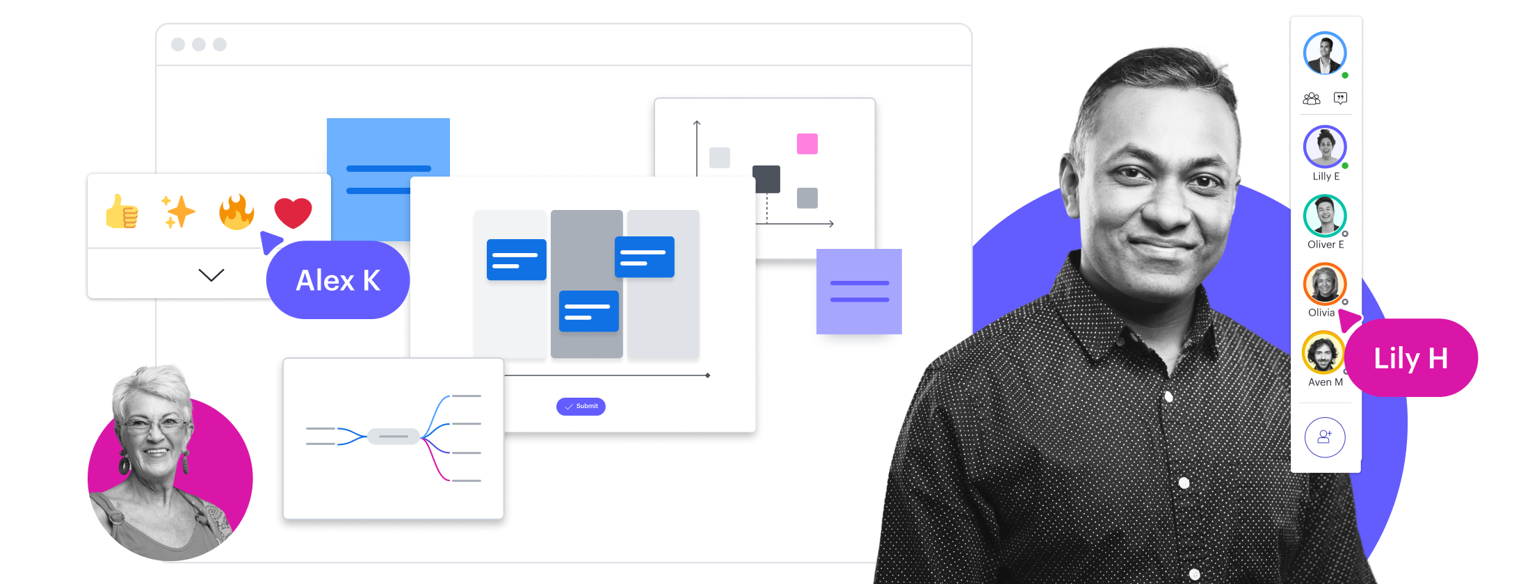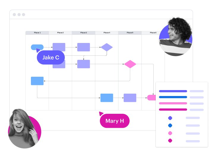 Move projects forward efficiently with the Lucid Visual Collaboration Suite. Align stakeholders, clarify workflows, and streamline processes in a shared space.