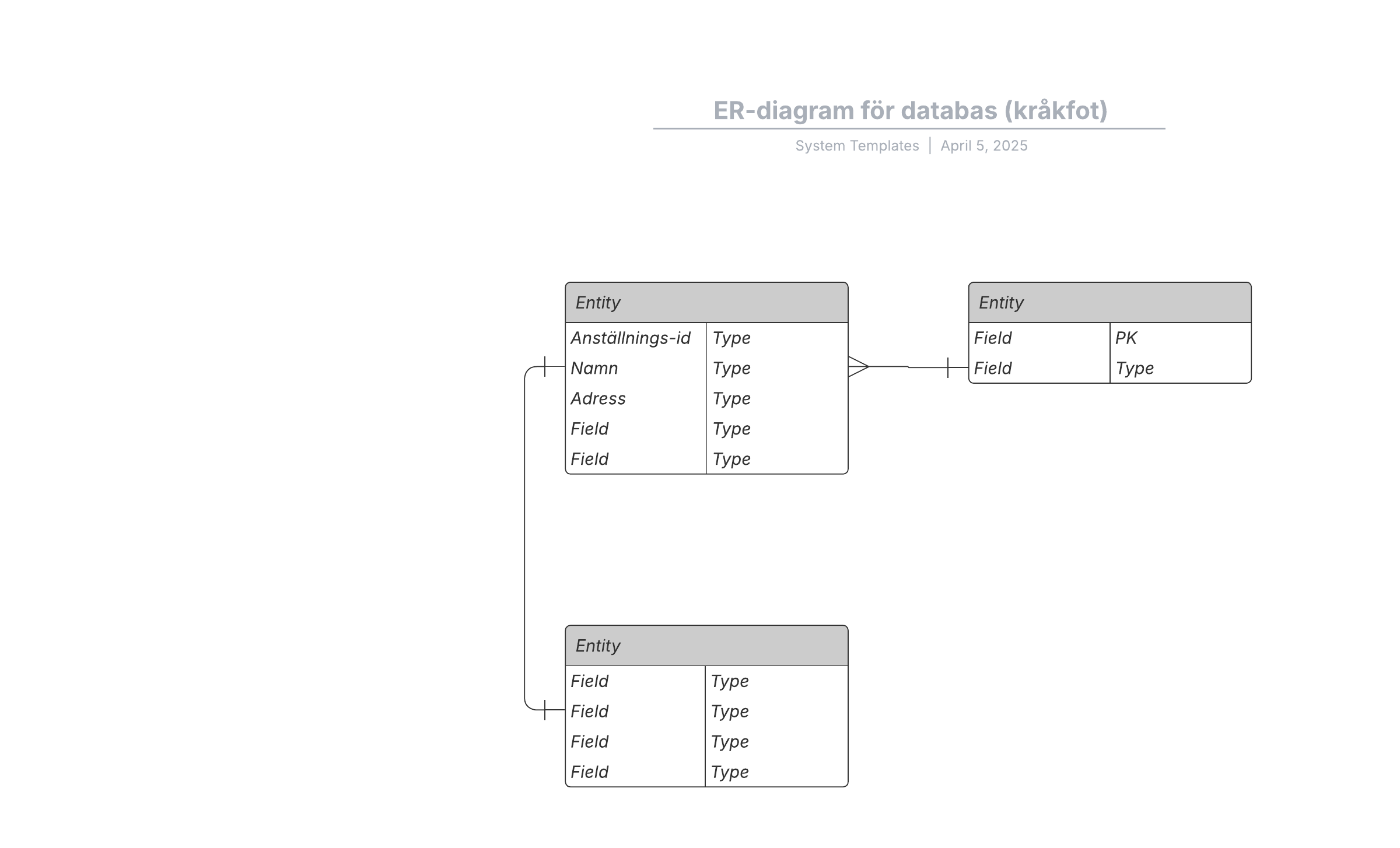 Öppna mallen och lägg till innehåll för att anpassa det grundläggande ER-diagrammet för databaser efter dina behov.