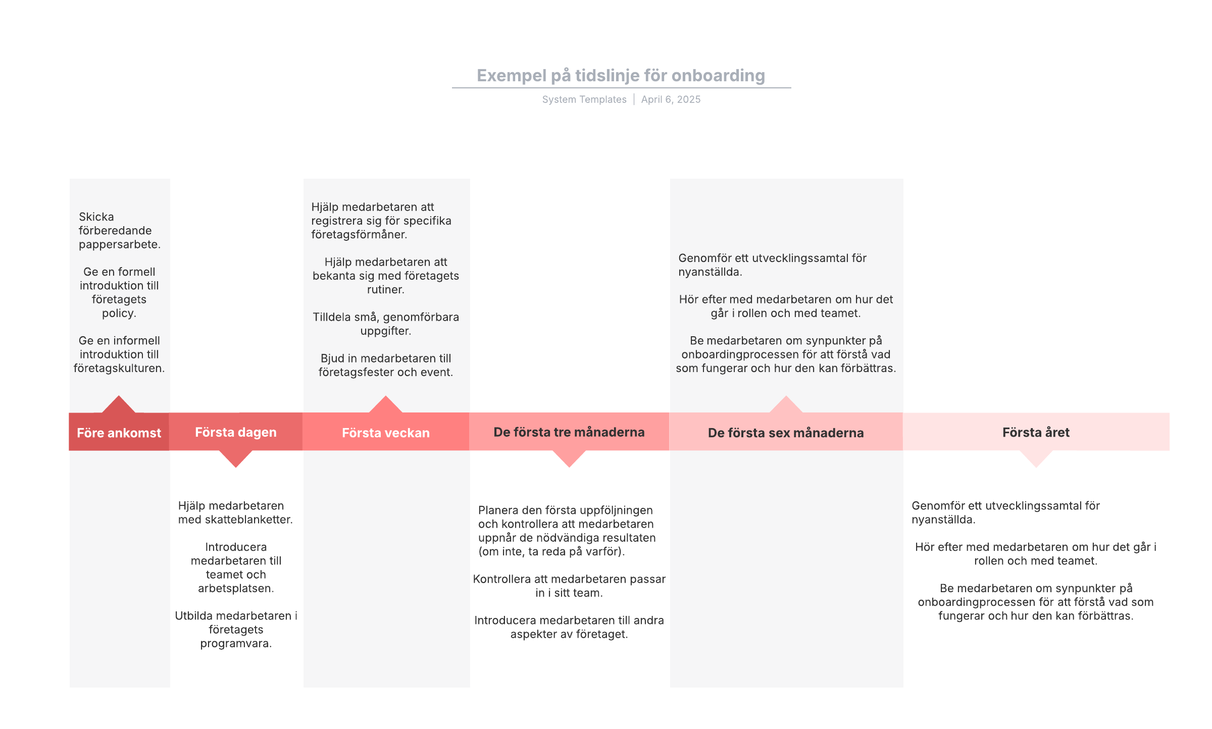 Den här tidslinjemallen för onboarding kan hjälpa dig att: