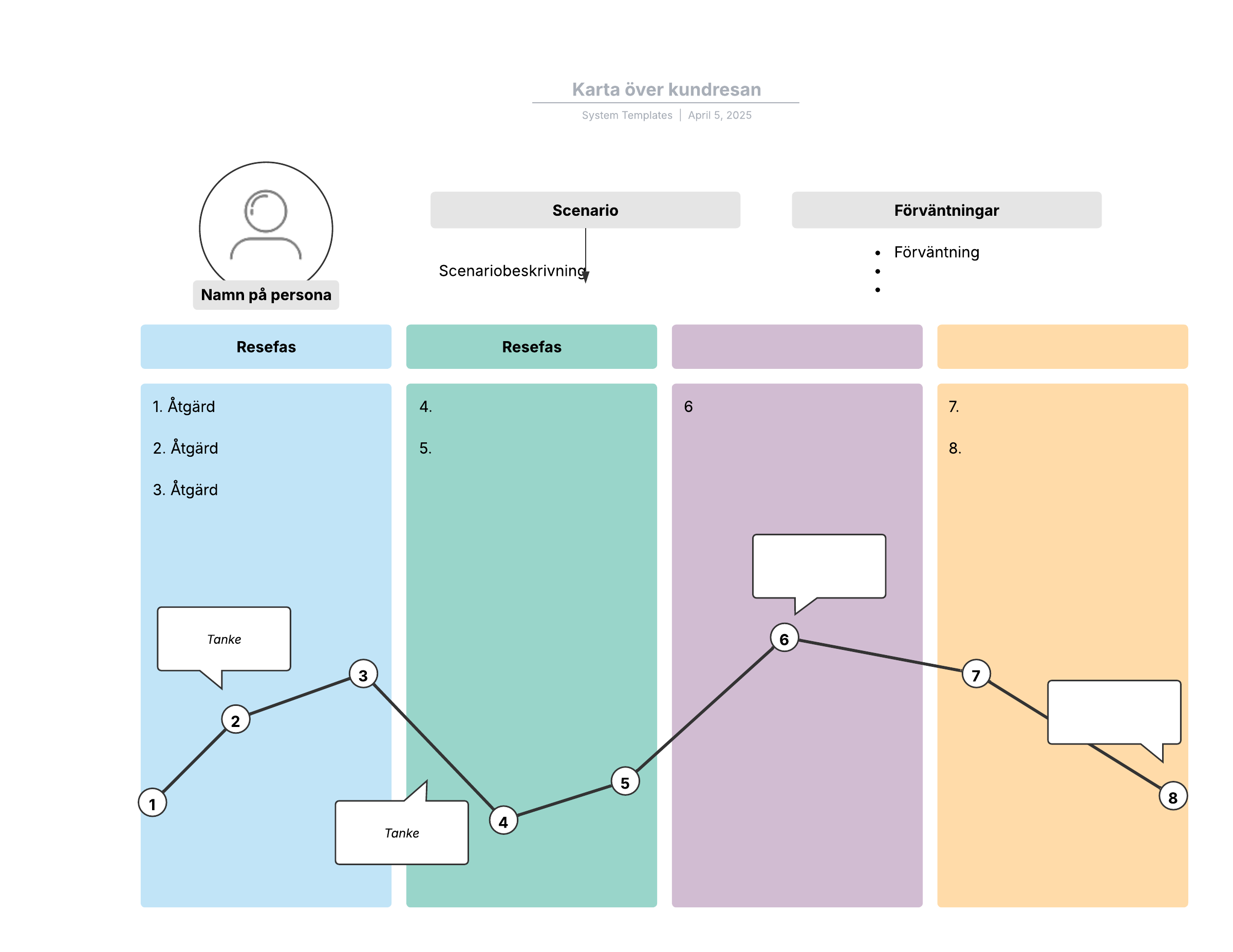 Öppna mallen för att se ett detaljerat exempel på en grundläggande kundresekarta som du kan anpassa efter dina behov.