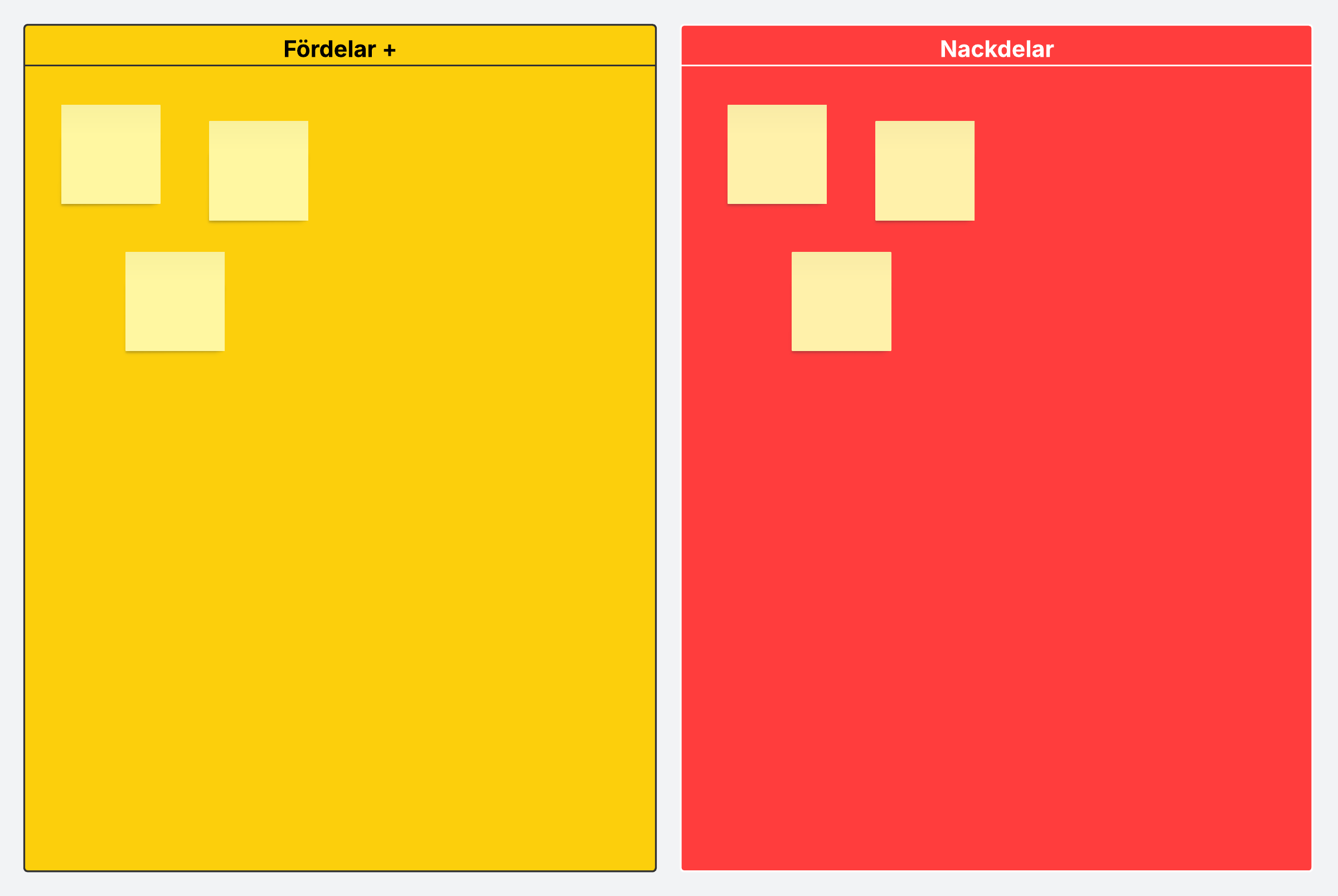 Det är mycket enklare att använda och samarbeta med våra mallar för listor över för- och nackdelar än den traditionella metoden med två kolumner, penna och papper. Så här används den: