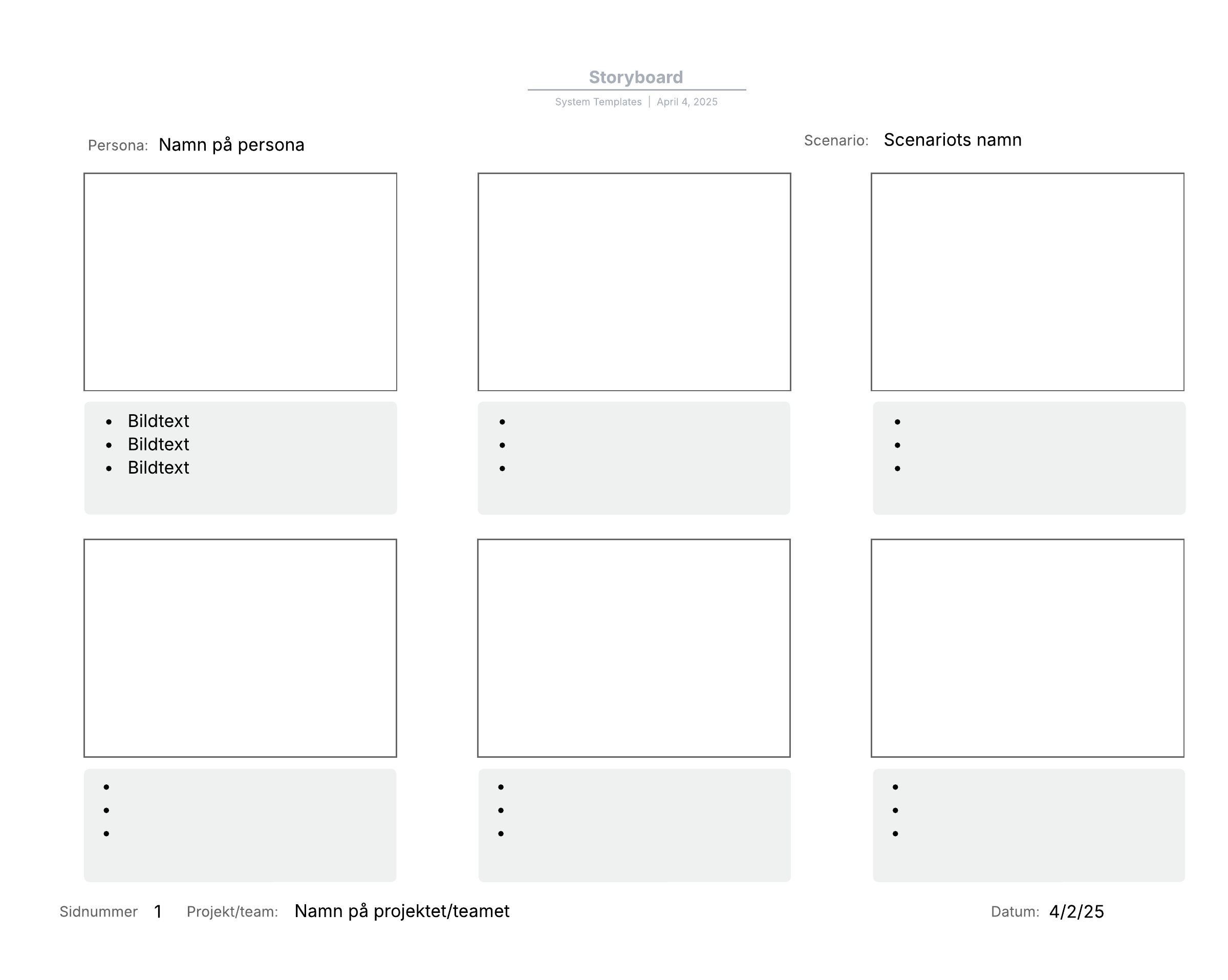 Öppna den här mallen och lägg till innehåll för att anpassa storyboard-diagrammet efter dina behov.