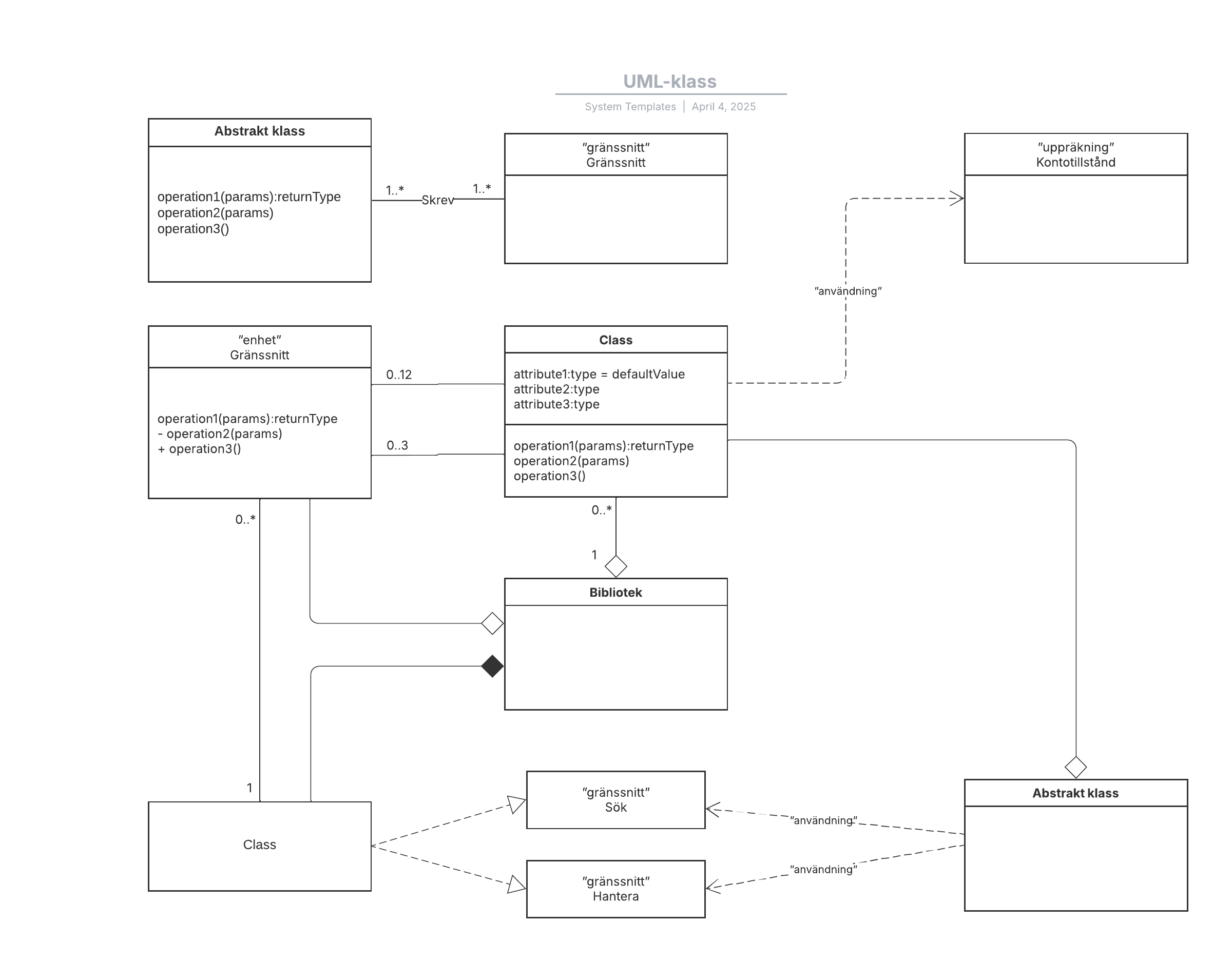 Öppna den här mallen och lägg till innehåll för att anpassa UML-klassdiagrammet efter dina behov.