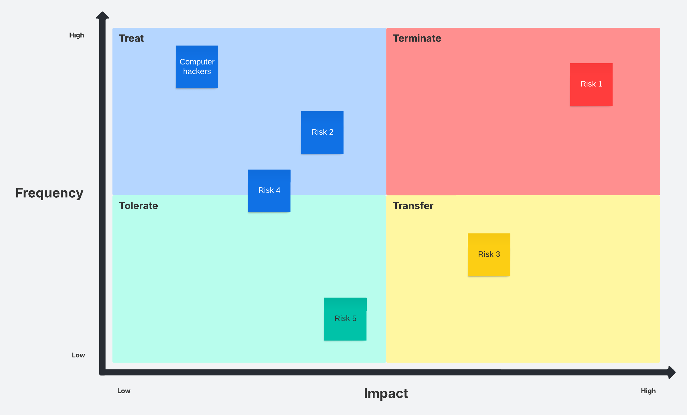 Determine frequency and impact of risks with this 4T risk management. Know when to treat, terminate, tolerate, or transfer each risk.