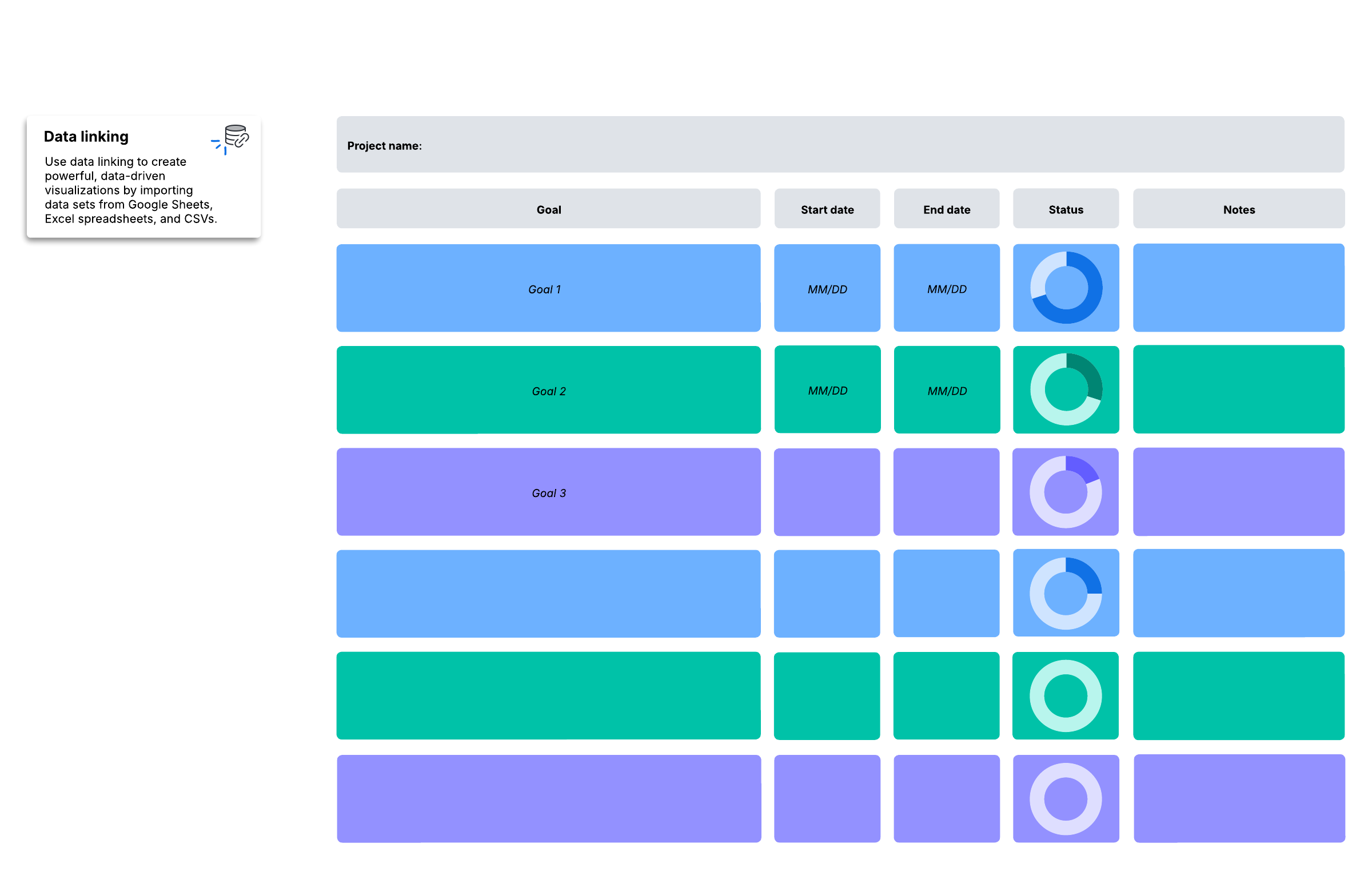 - Show the status of each goal at a high level.
