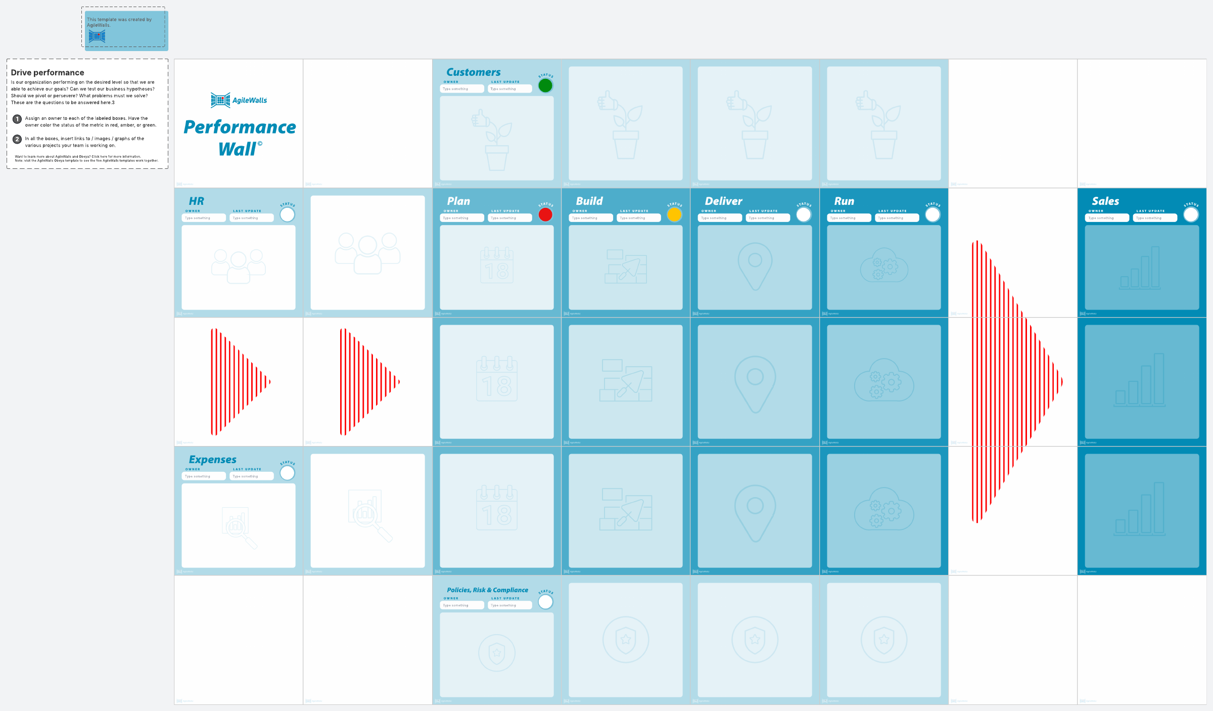 The Obeya method helps businesses gather information from across the organization, organize it, and synthesize it so leadership can make informed and effective decisions. The AgileWalls performance wall template can help.