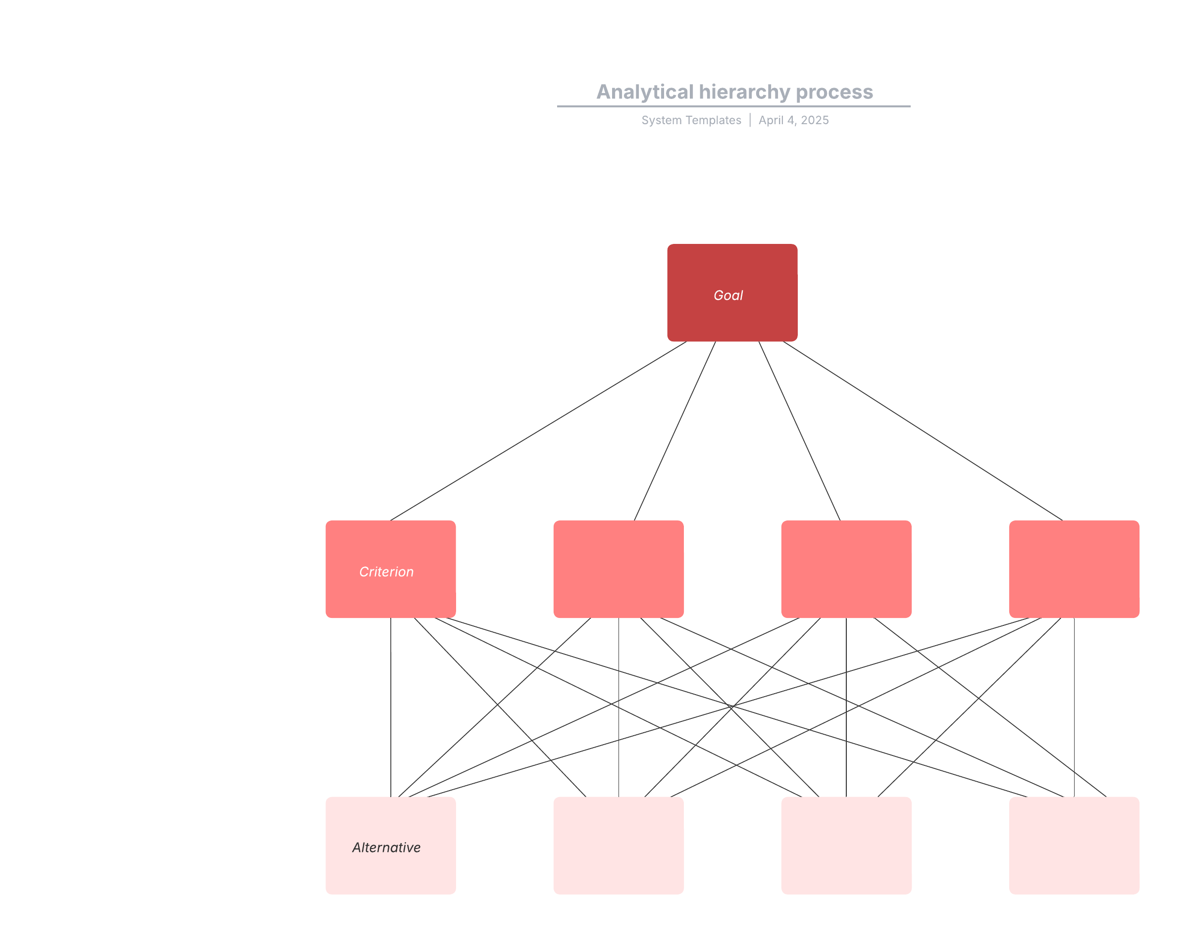 Open this template and add content to customize this analytical hierarchy process diagram to your use case.