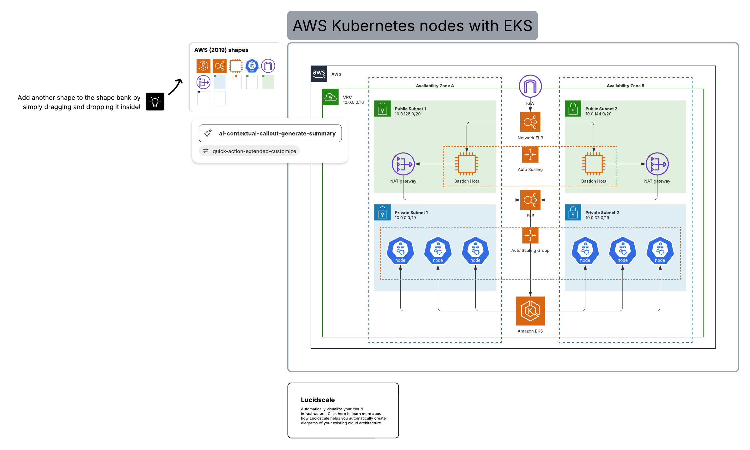 - Access Lucidchart's AWS (2019) and Kubernetes shape libraries.