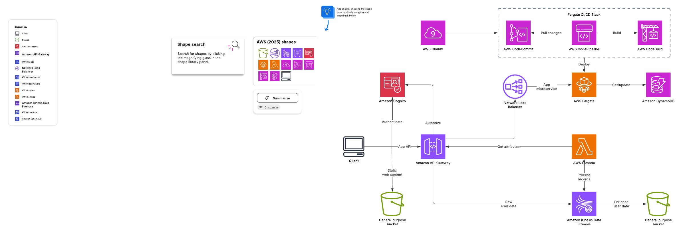 Open this template to view an AWS web application structural flow example that you can customize to your use case.