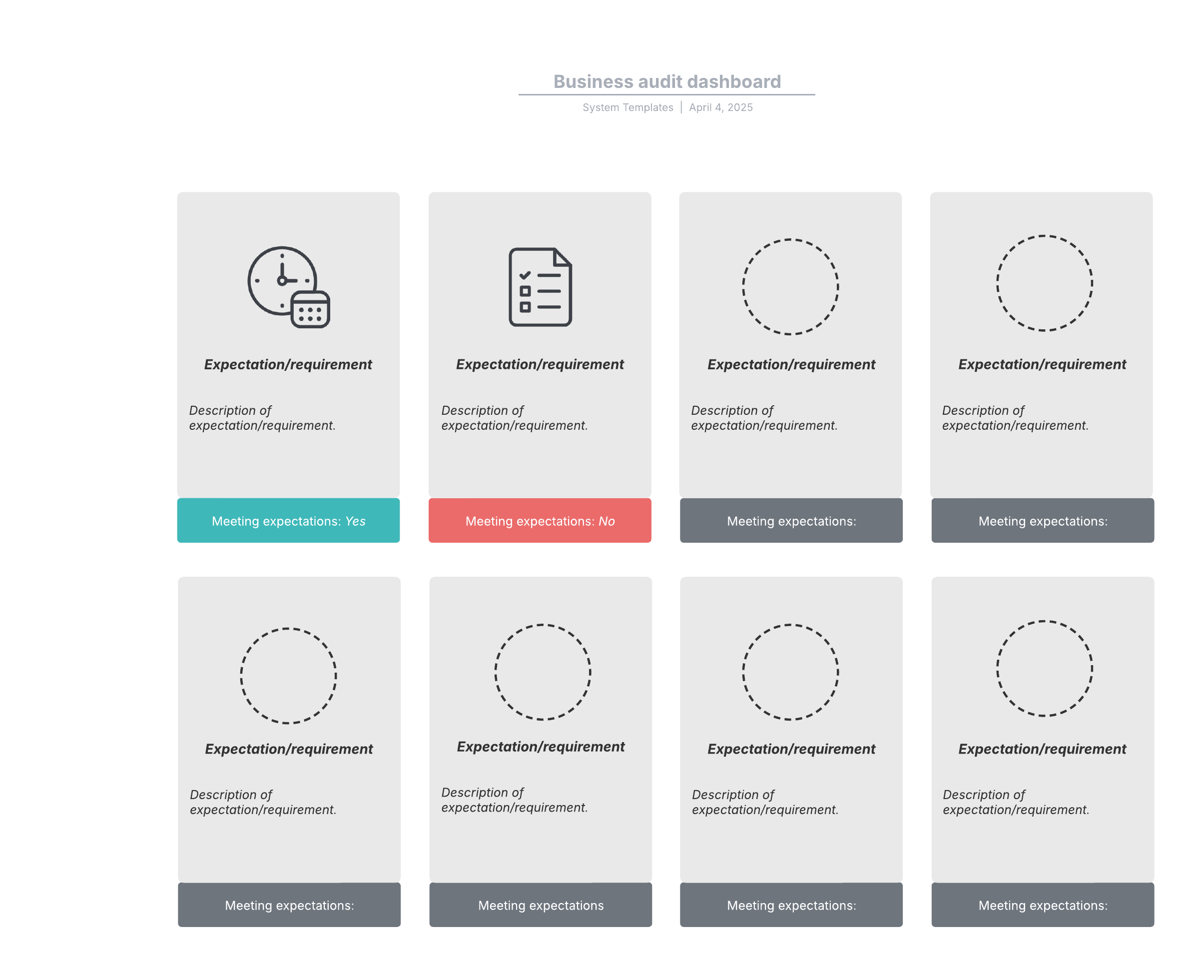 Open this template and add content to customize this business audit dashboard to your use case.