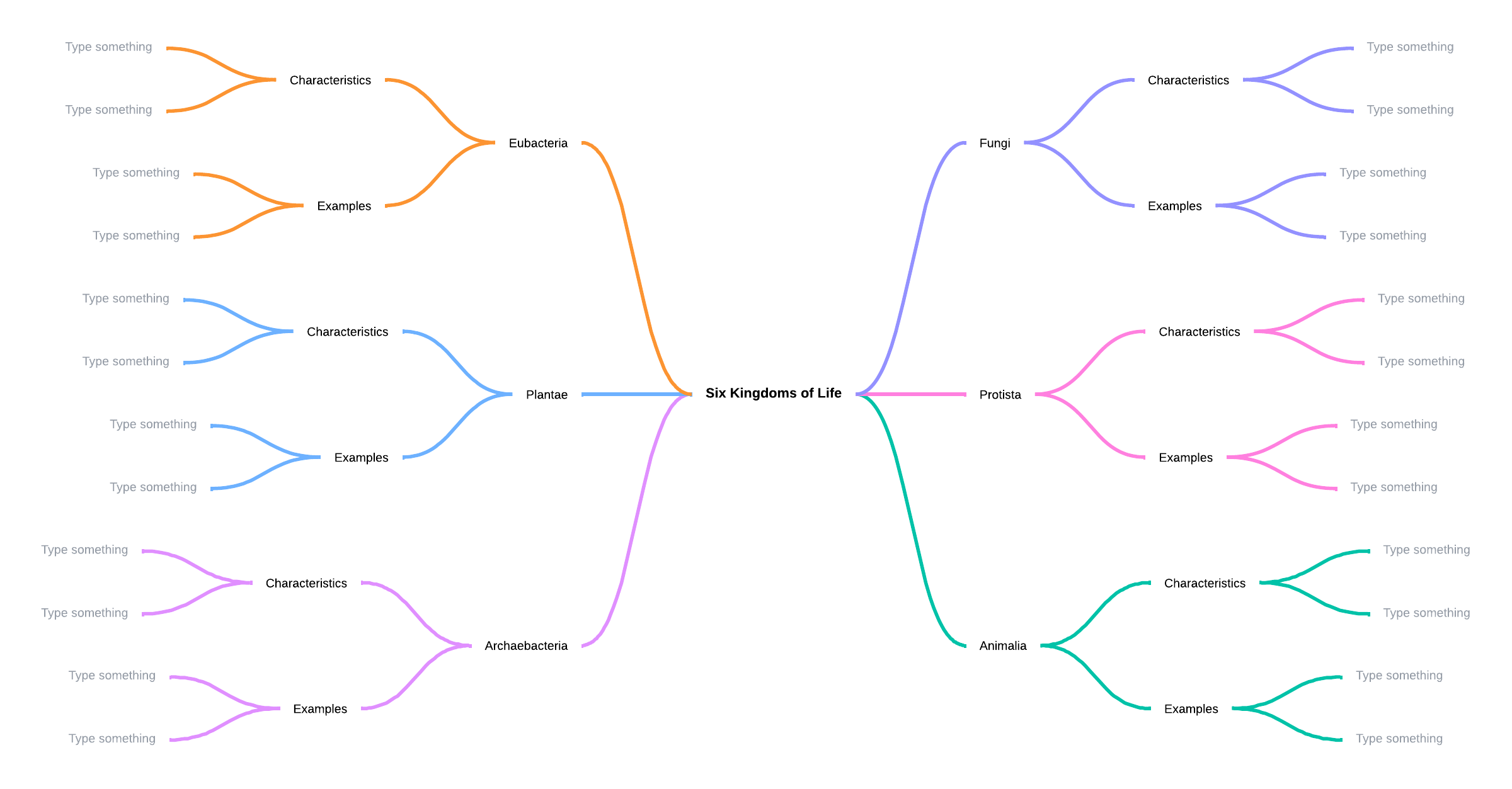 Open this template to view a detailed example of a classification mind map that you can customize to your use case.