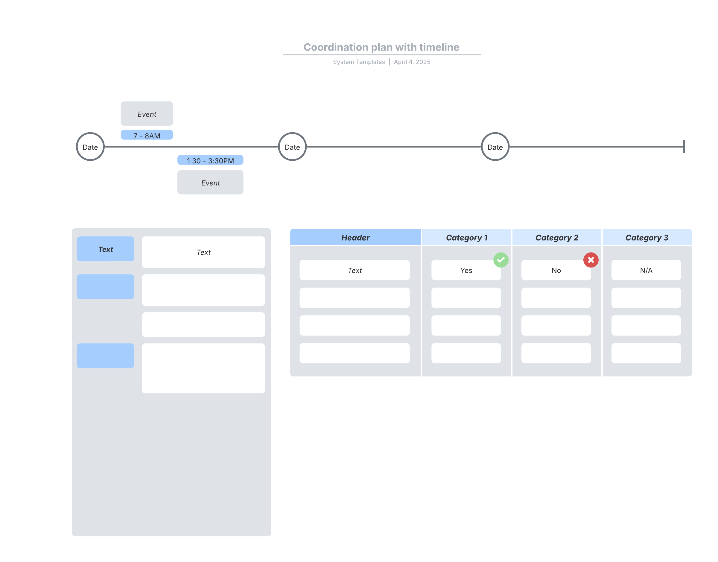 Open this template and add content to customize this coordination plan diagram to your use case.