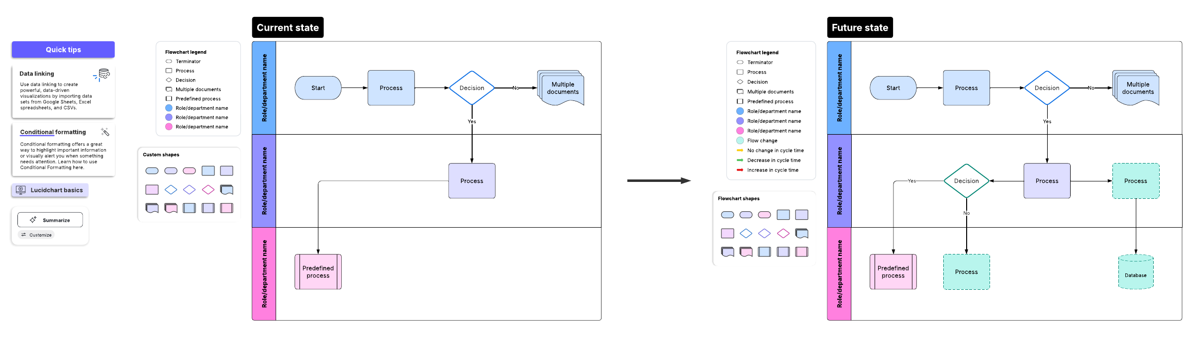 Use the current vs. future state flowchart template in Lucidchart