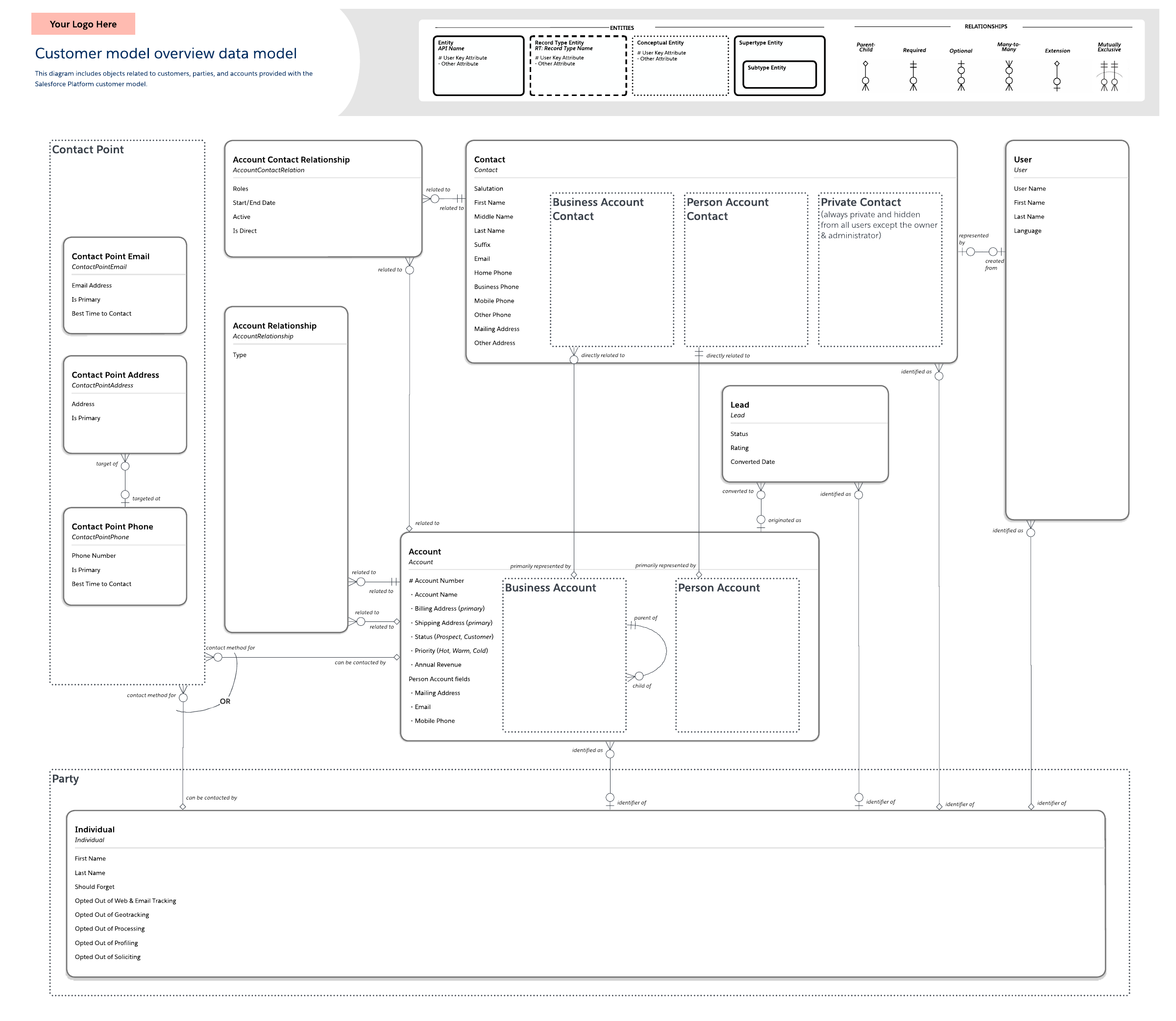 Open this template and add content to customize this Customer model overview data model to your use case.