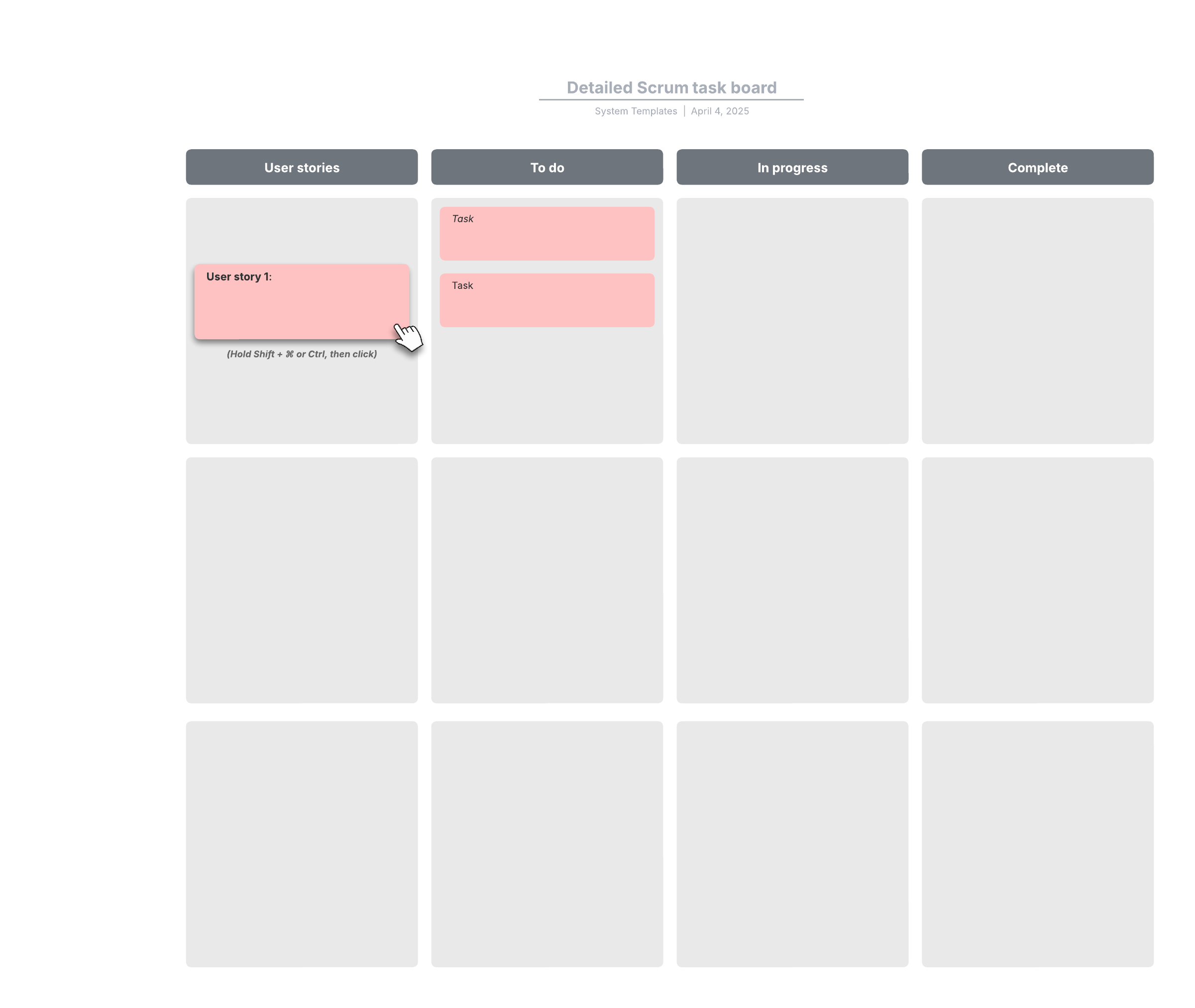 Open this template and add content to customize this detailed scrum task board to your use case.