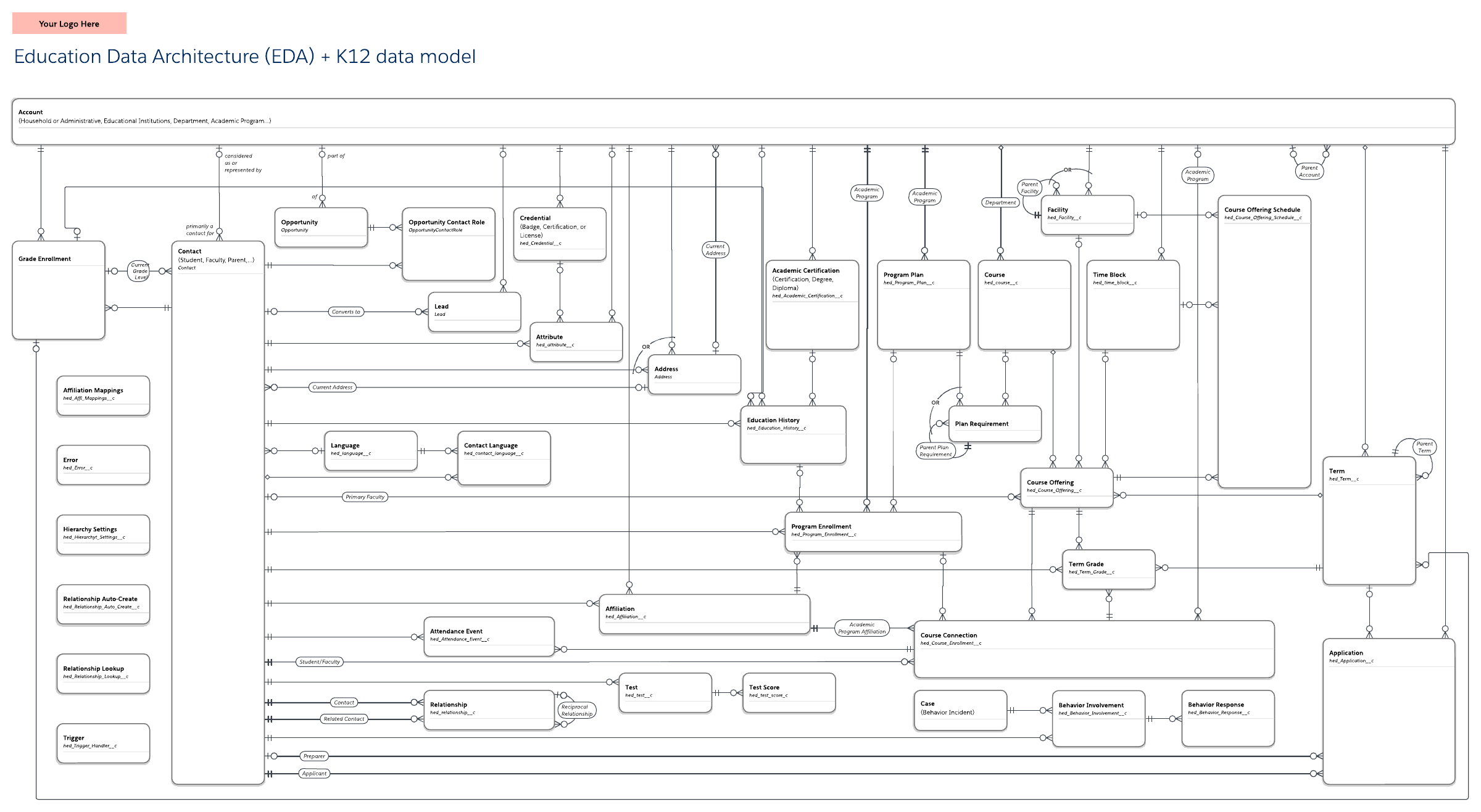 Open this template and add content to customize this Education Data Architecture (EDA) + K12 data model to your use case.