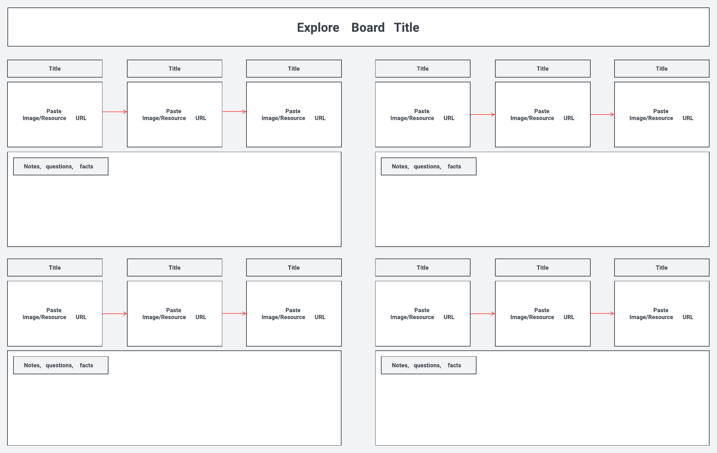 Explore board with multiple note sections