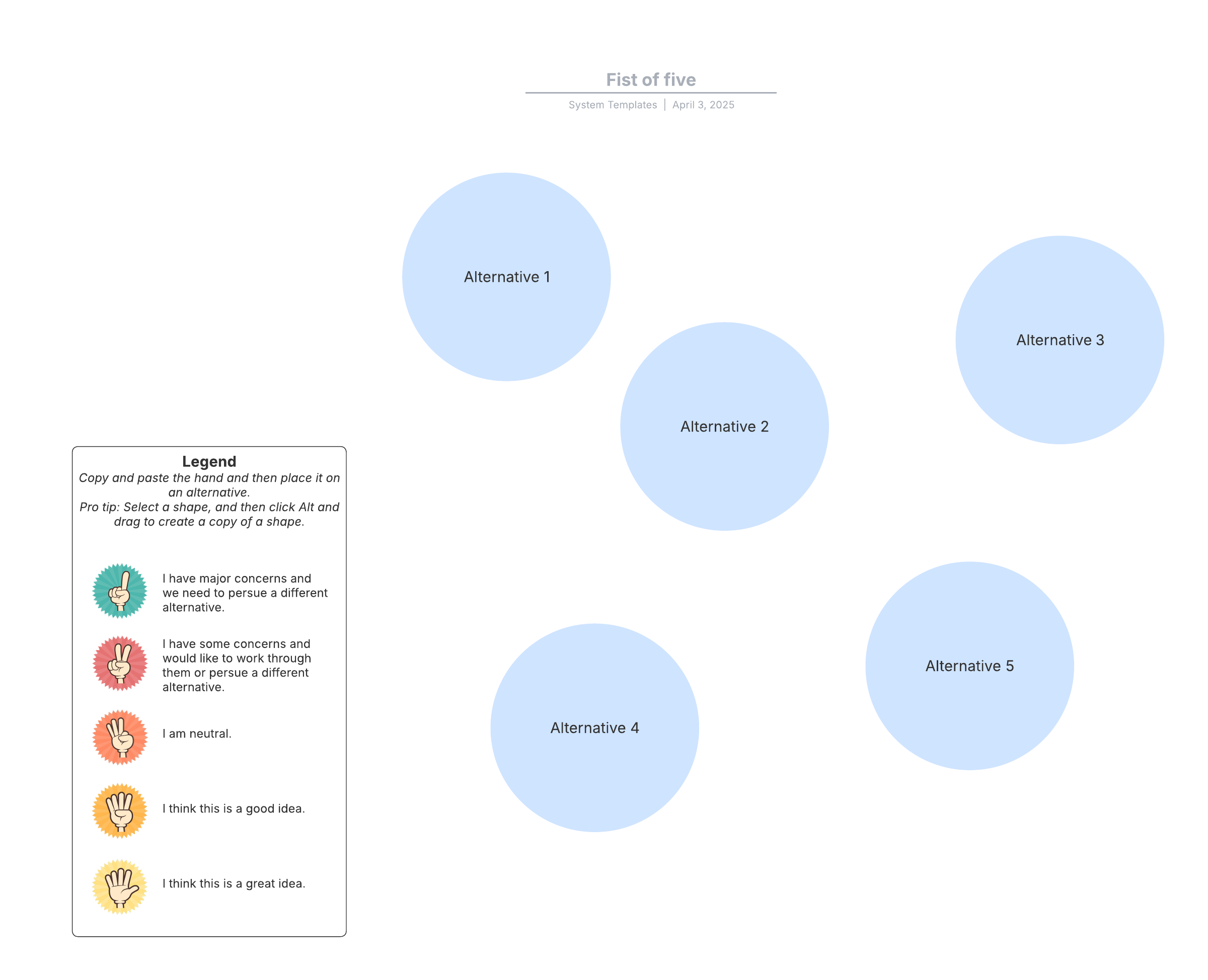 Open this template and add content to customize this fist of fives diagram to your use case.