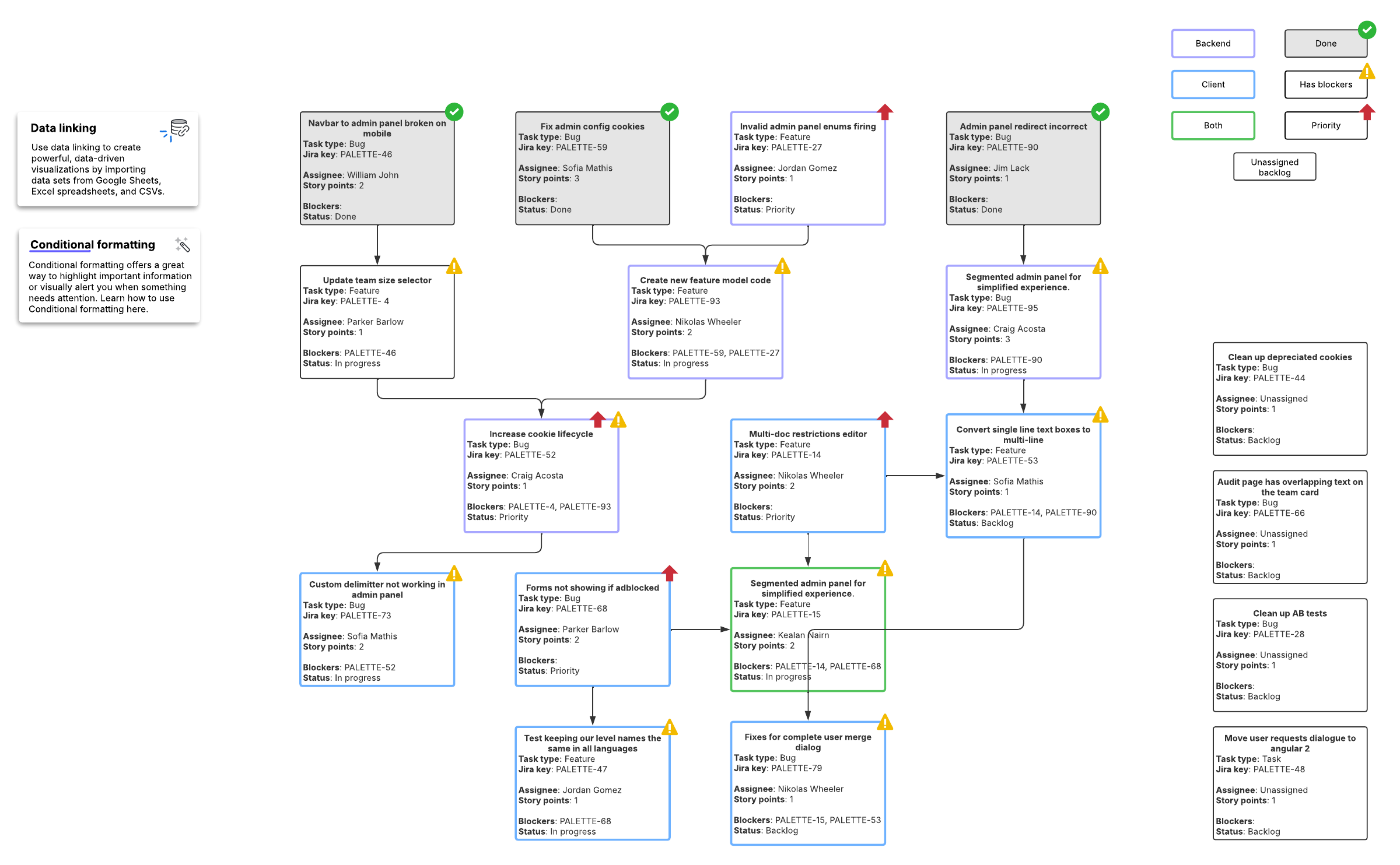 Open this template to view a Flowchart showing task dependencies template that you can customize to your use case.