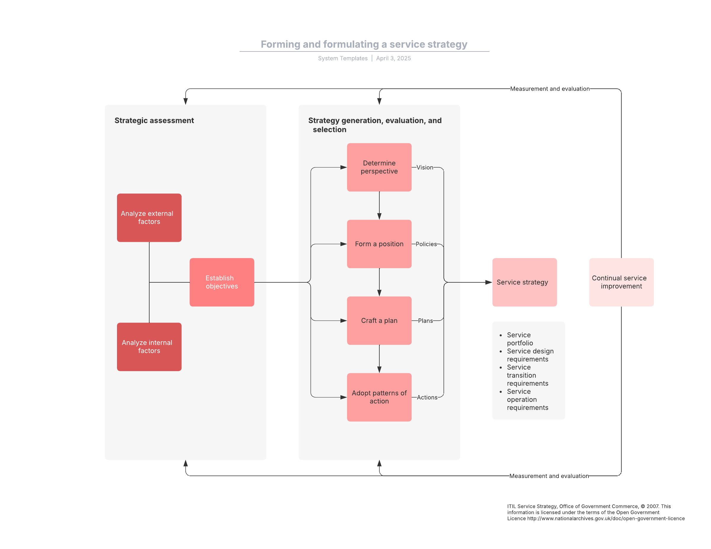 Open this template to view a detailed example of a forming and formulating a service strategy diagram that you can customize to your use case.