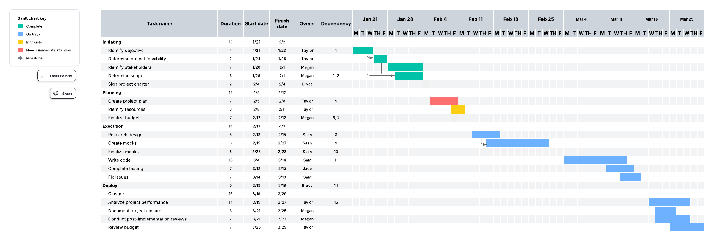 Open this template to view a detailed example of a gantt chart that you can customize to your use case.